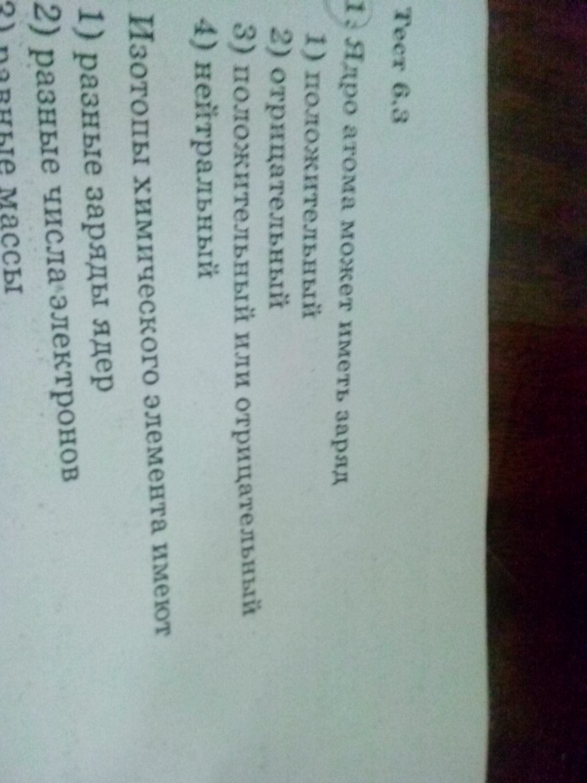 ядро атома может иметь заряд 1 положителтный 2 отрицательный 3 положительный и отрицательный 4 нейтральный