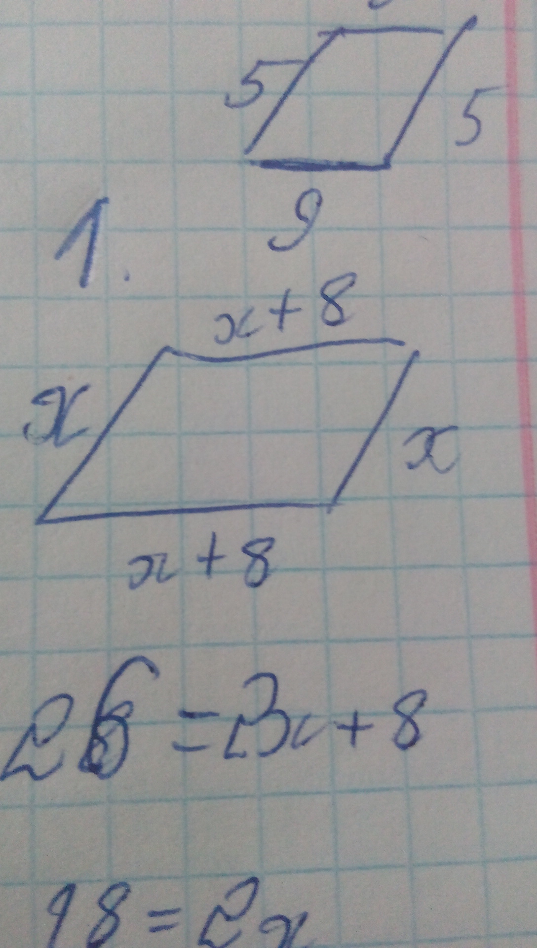 одна из сторон параллелограмма на 8 см больше другой а его периметр=52см. Найти стороны параллелограмма