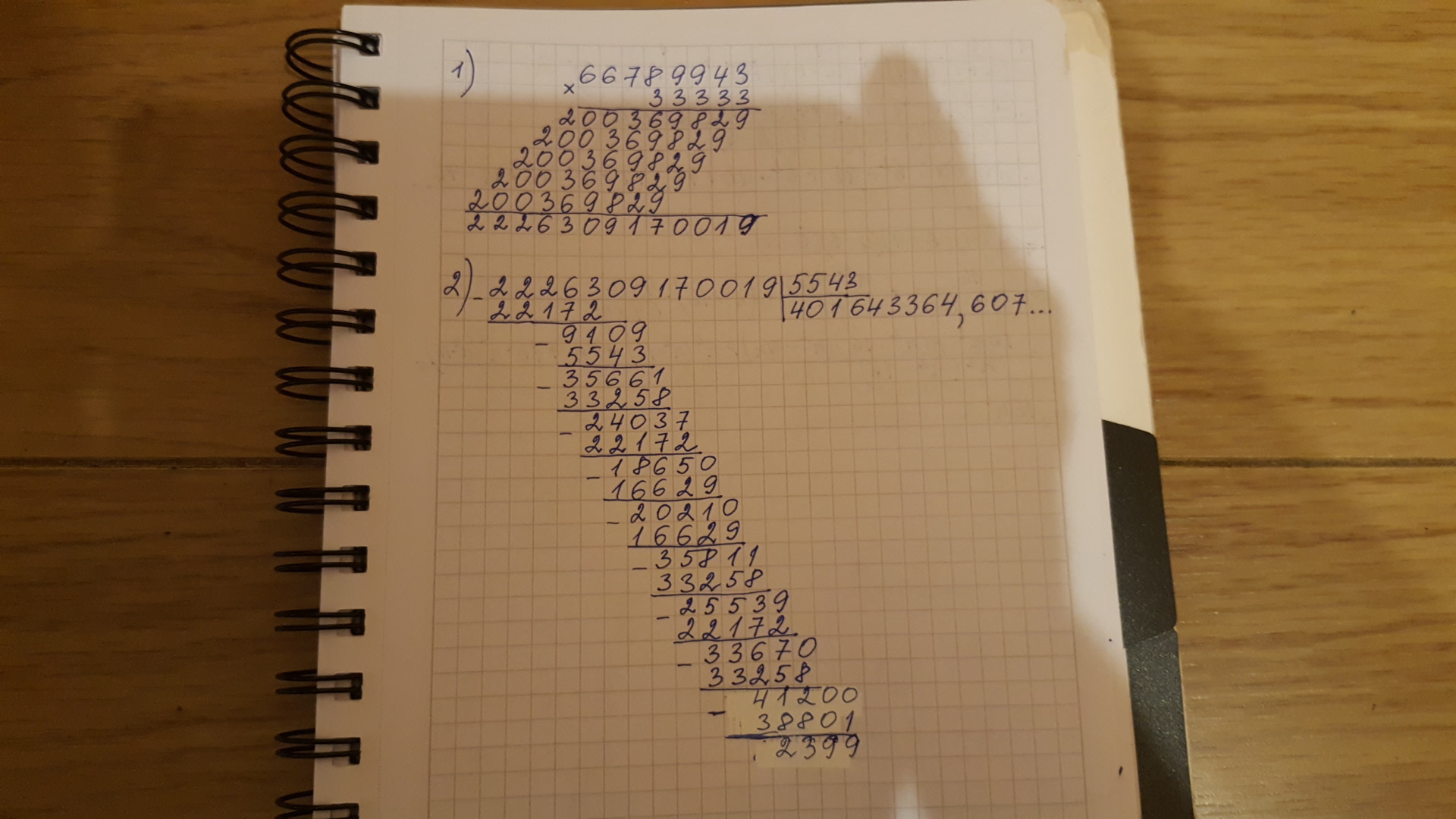 33333 × 66789943 ÷ 5543 = 401643364,607...