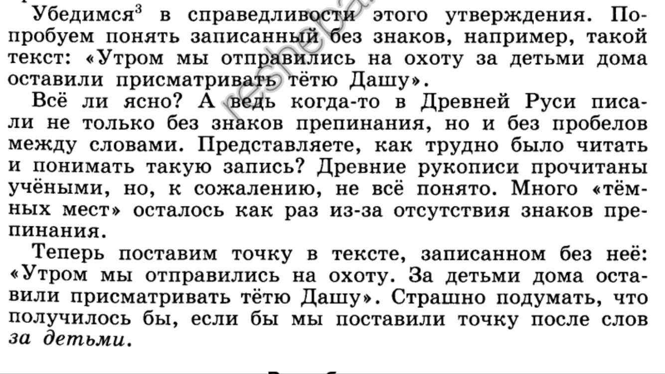 В Древней Руси писали без знаков припинания и не все записи были поняты. Без знаков препинания не можно понять смысл предложения.Есть большая разница где их ставить, иначе может получиться без смыслинное предложение.