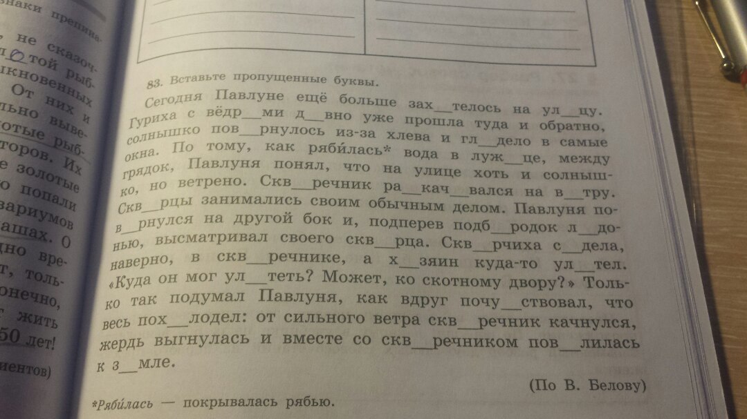 Сегодня Павлуне еще больше захотелось на улицу. Гуриха с ведрами давно уже прошла туда и обратно, солнышко повернулось из-за хлева и глядело в самые окна. По тому, как рябилась вода в лужице, между грядок, Павлуня понял, что на улице хоть и солнышко, но ветрено. Скворечник раскачивался на ветру. Скворцы занимались своим обычным делом. Павлуня повернулся на другой бок и, подперев подбородок ладонью, высматривал своего скворца. Скворчиха сидела, наверно, в скворечнике, а хозяин куда-то улетел. «Куда он мог улететь? Может, ко скотному двору?» Только так подумал Павлуня, как вдруг почувствовал, что весь похолодел: от сильного ветра скворечник качнулся, жердь выгнулась и вместе со скворечником повалилась к земле.