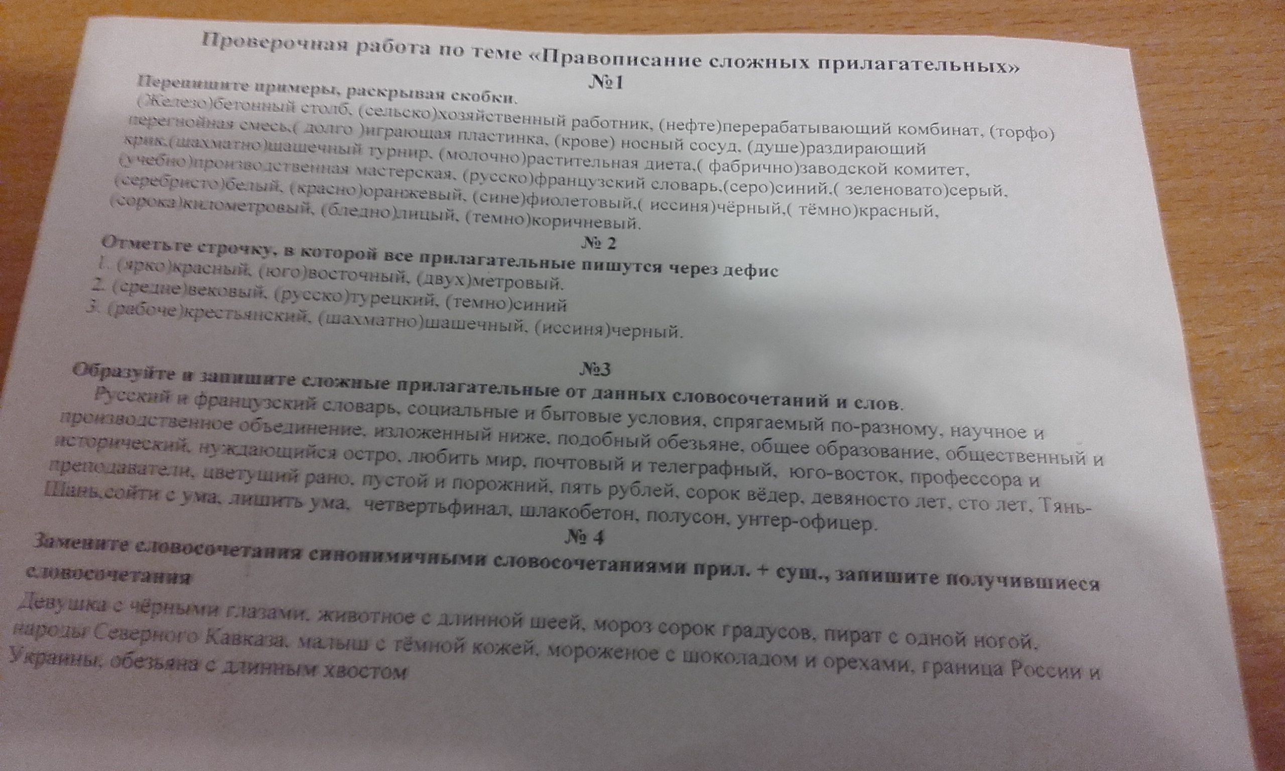 1. Во всех прилагательных нужно поставить дефис, например:Железо-Бетонный
