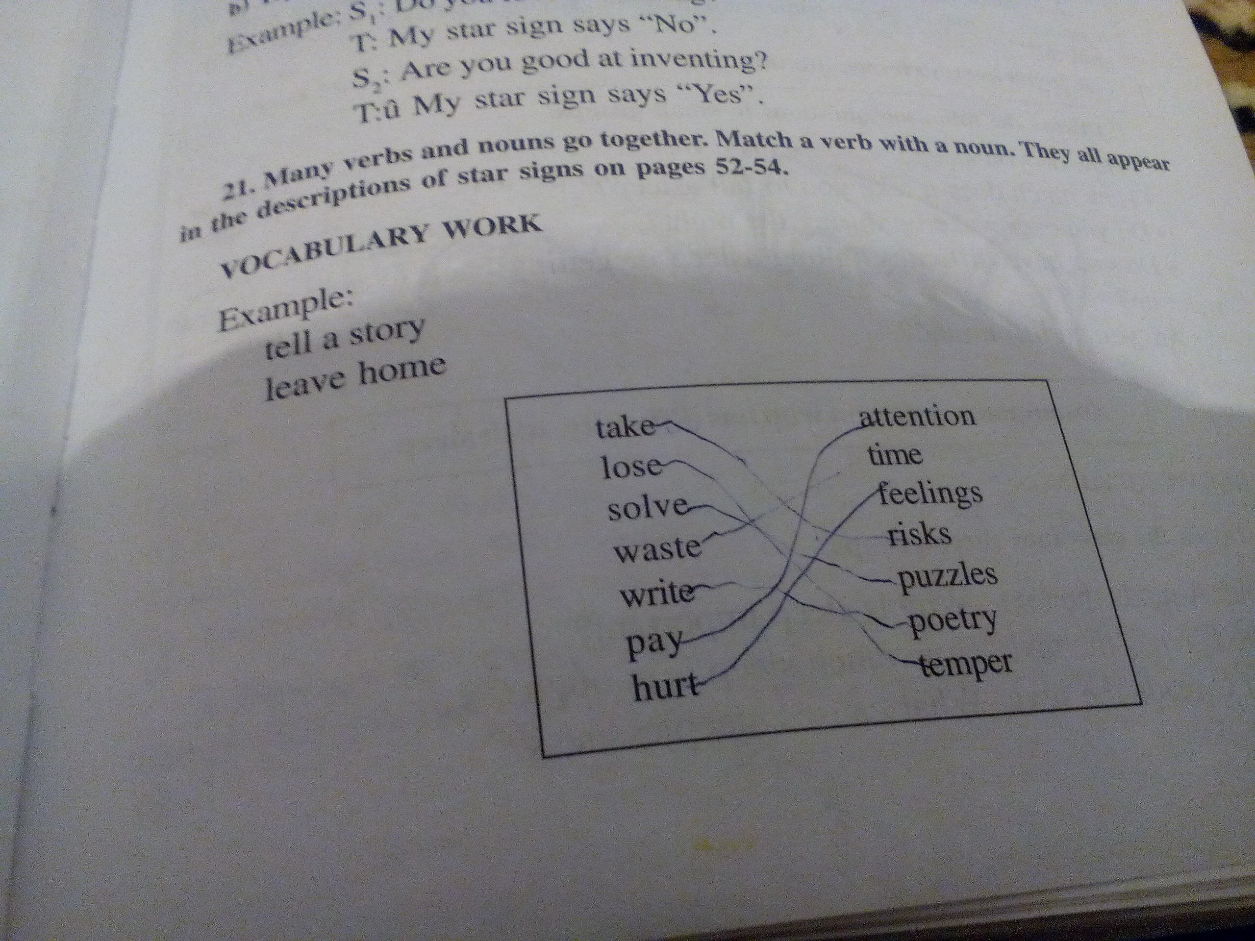 5 solve puzzles 7 waste time 1 write poetry 4 hurt feelings 6 take risks 2 pay attention 3 loose temper