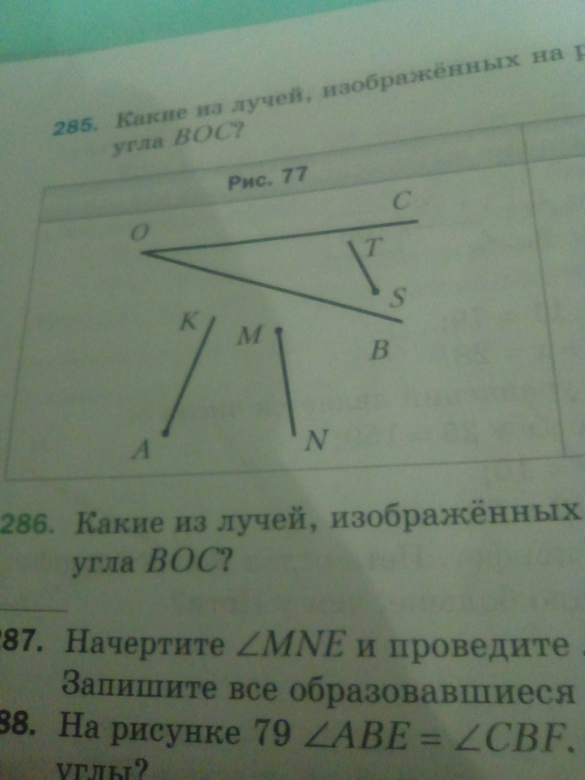 все лучи ограничены одной точкой, за пределы которой они не заходят, но с другой стороны они ничем не ограничены, значит, бесконечны. Не ограниченны точками со стороны чертежа только АК и TS. Их можно продлить, и тогда будет видно, что они пересекают BOC
