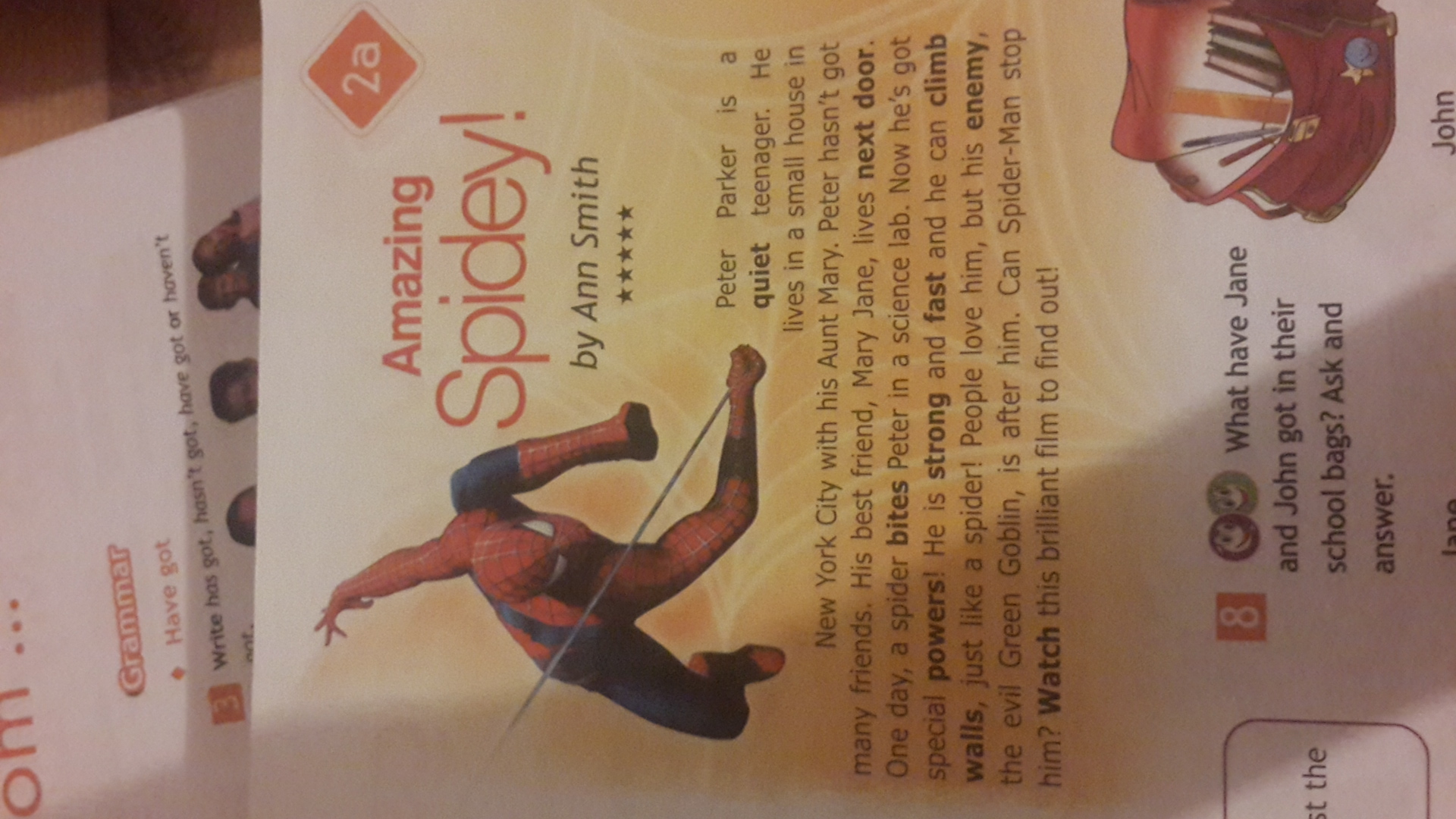 Питер Паркер это скромный подросток. Он живет в маленьком доме в Нью-Йорке с тетей Мари. У Питера не много друзей. Его лучший друг, Мэри Джейн, она живет по-соседству с ним. (А ДАЛЬШЕ УЖЕ НЕ ПОНИМАЮ)