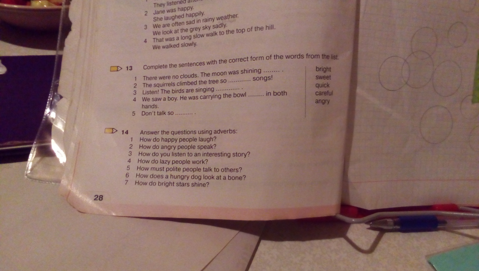 1-bright. 2-quick. 3-sweet. 4-careful 5-angry!! Всё правильно сам делал получил 5
