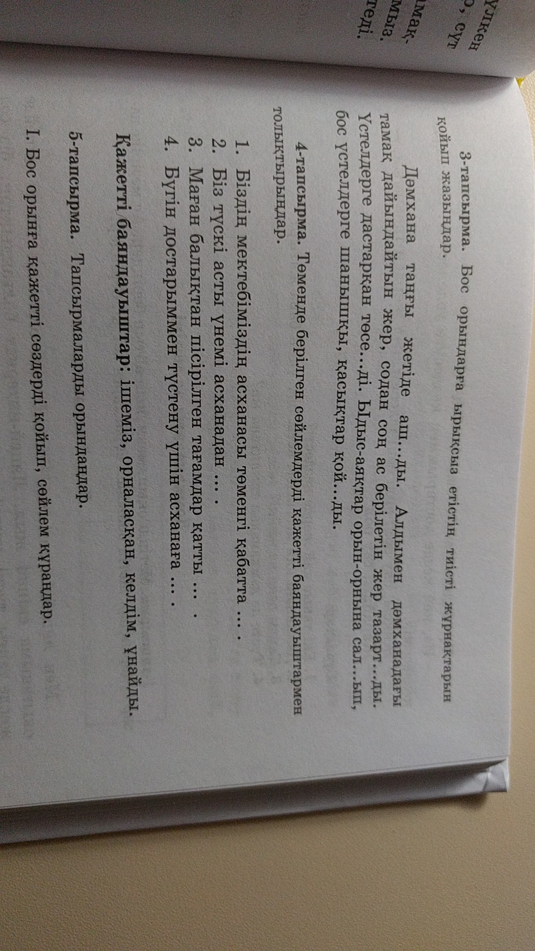 1) орналаскан 2) ішеміз 3)ұнайды 4) келдім