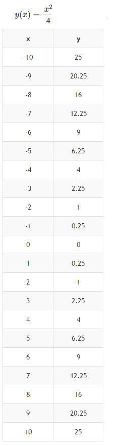 Таблицу заполнять подстановкой в уравнение переменной х.