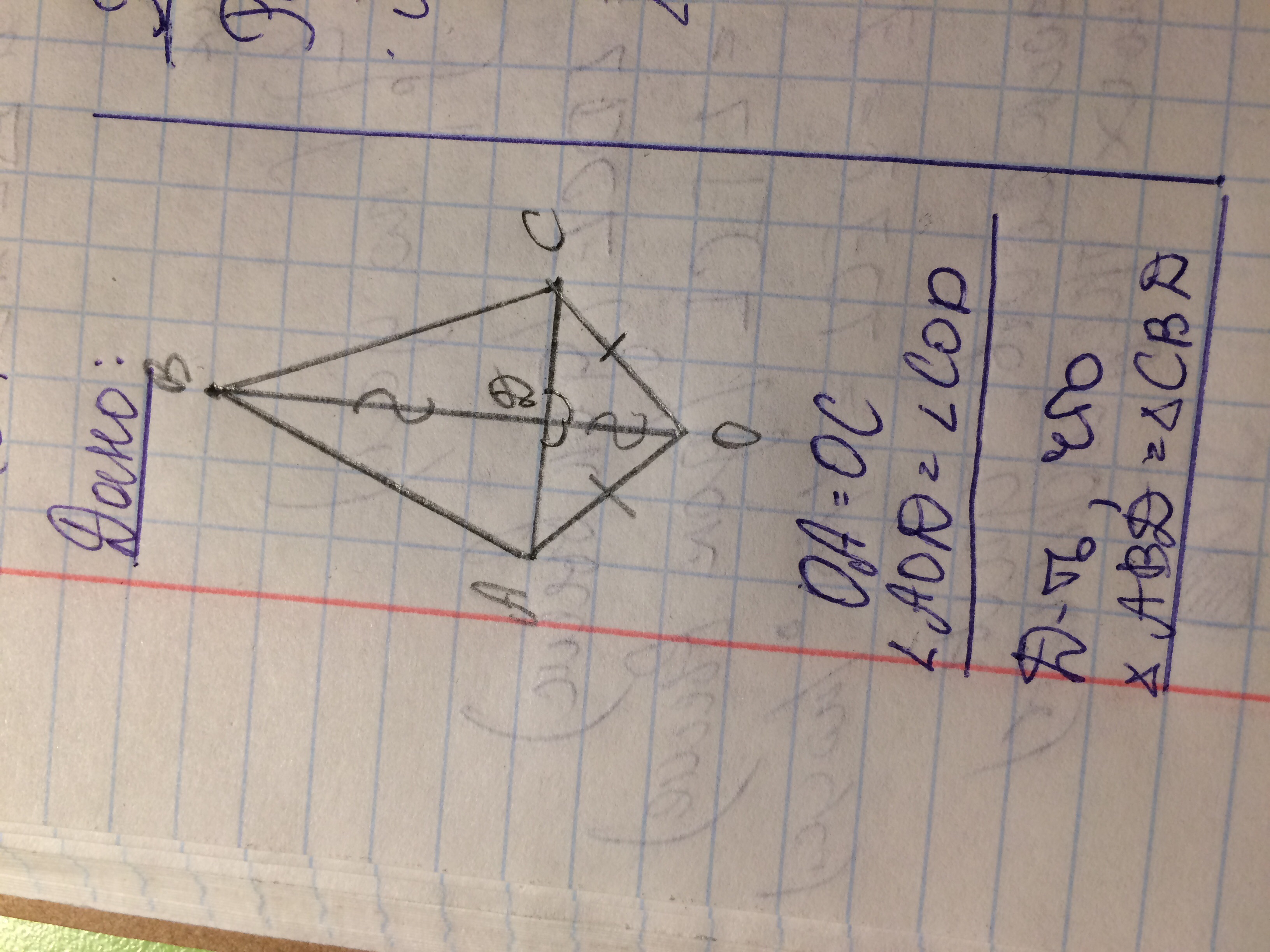 треуг абд равен треуг сбд аналогично, по двум сторонам и углу между ними