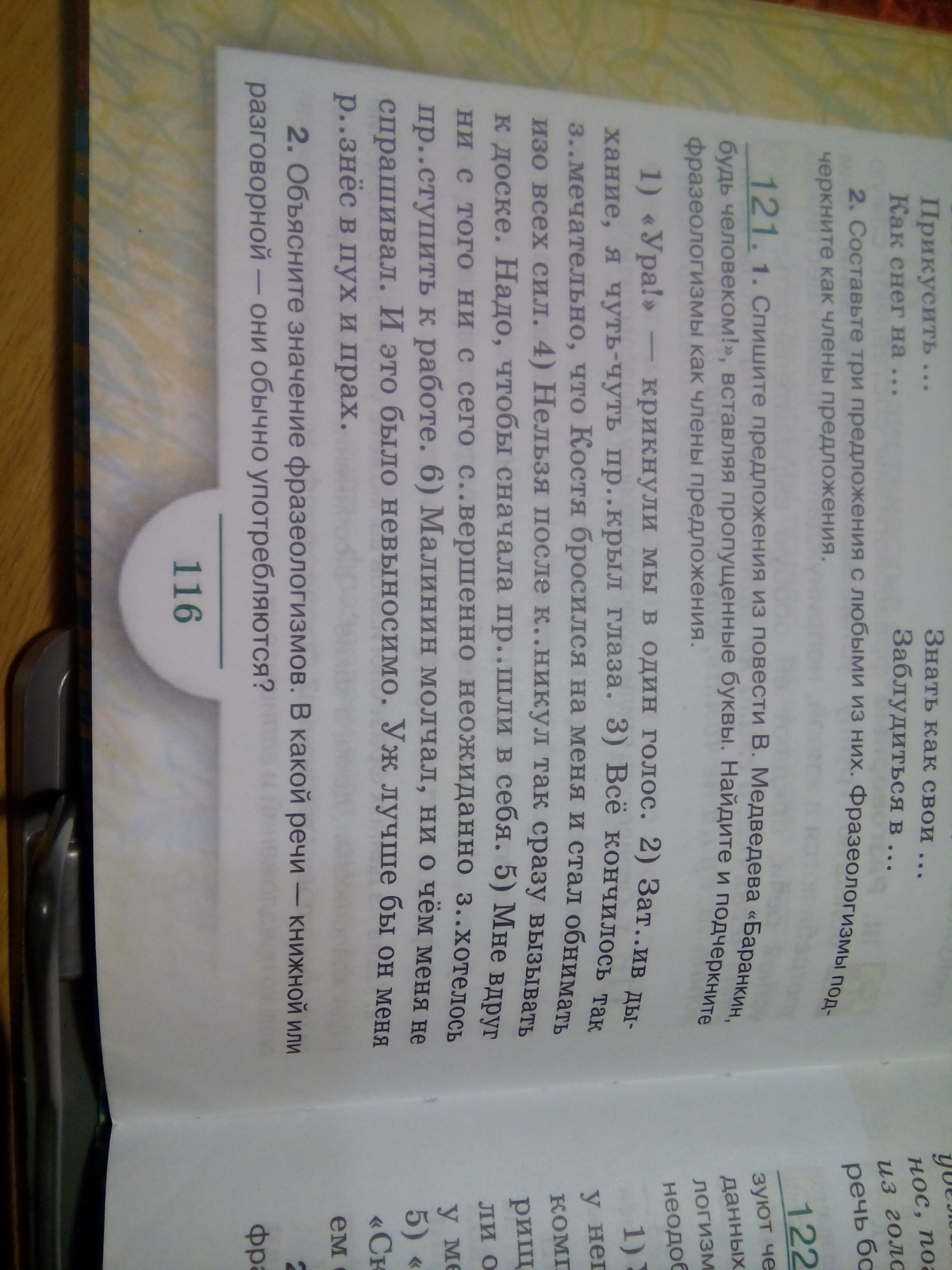 Фразеологизмы : в один голос, пришли в себя, разнес в пух и прах.