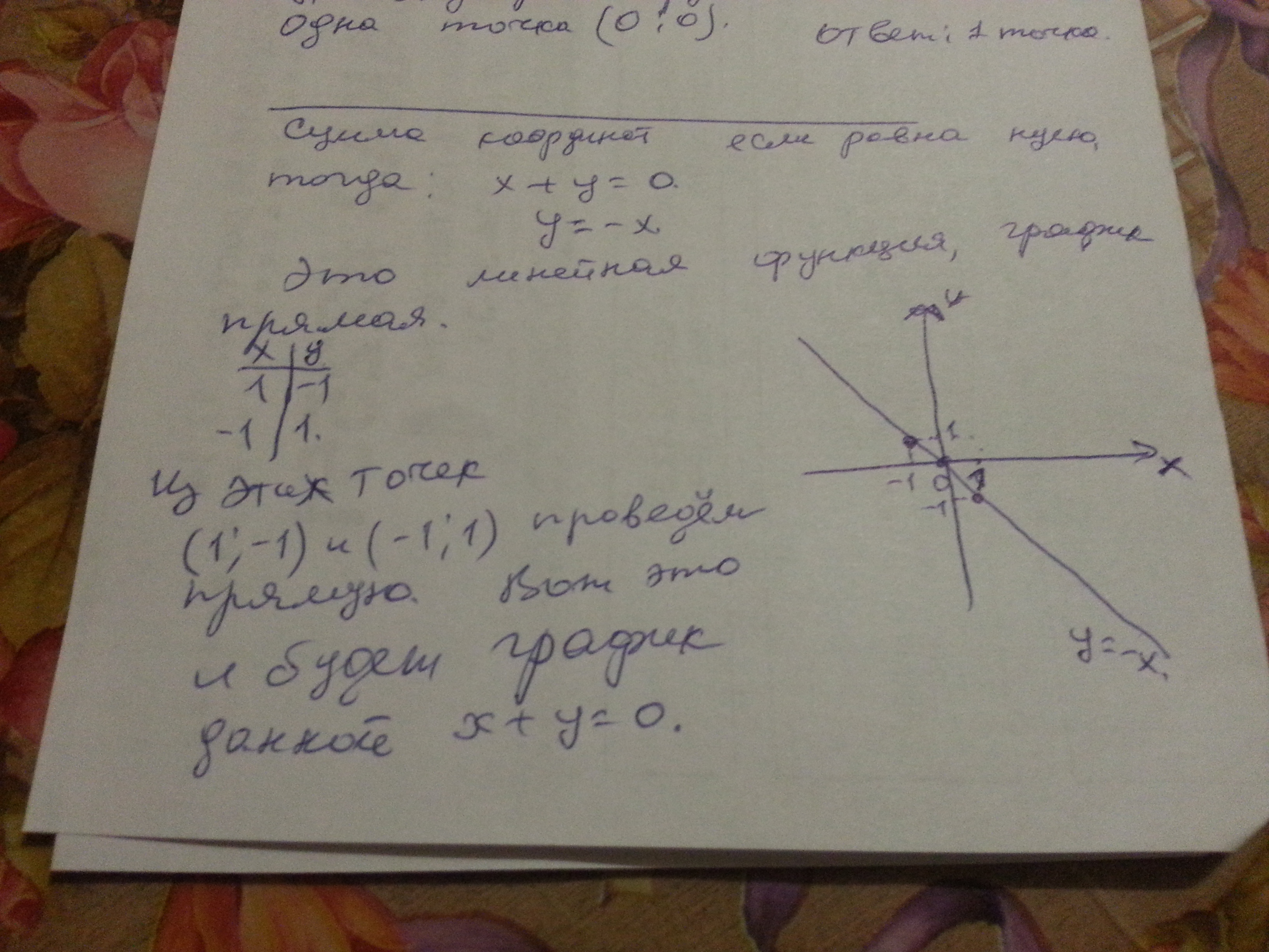 Какую линию задают на координатной плоскости все точки, сумма координат которых равна нулю?