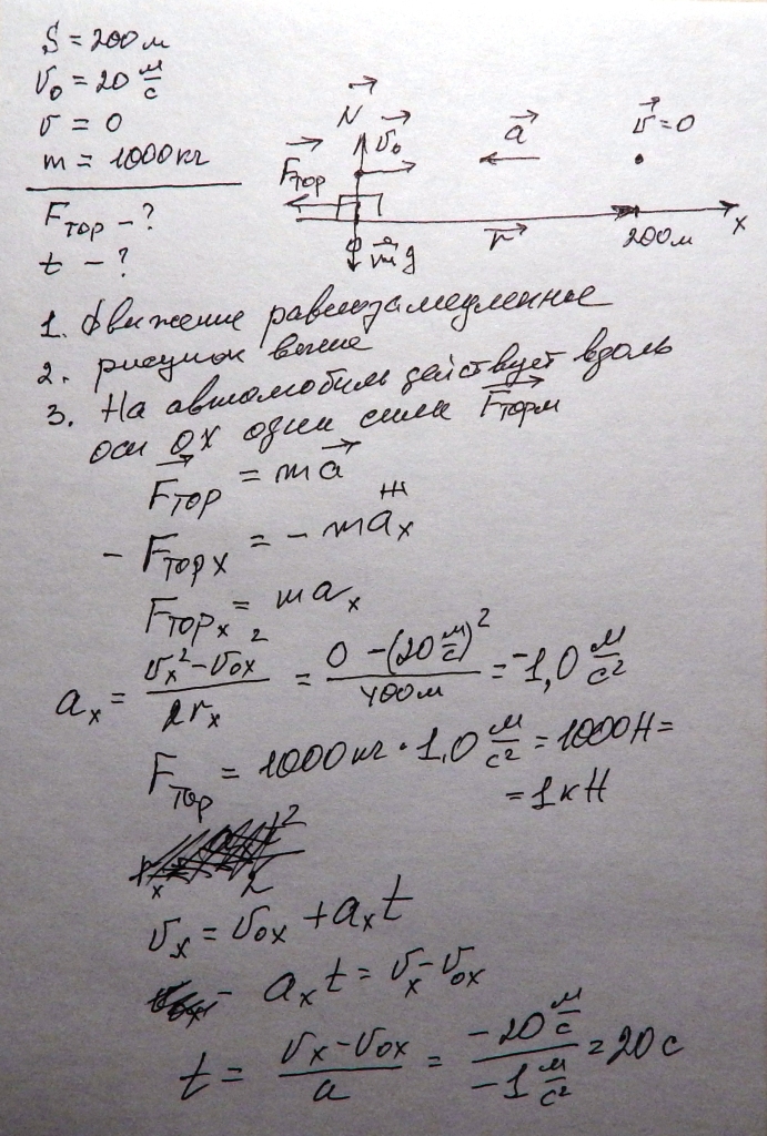 20 м/с. Какова должна быть сила торможения и какое время, чтобы автомобиль массой 1000 кг остановился у станции?