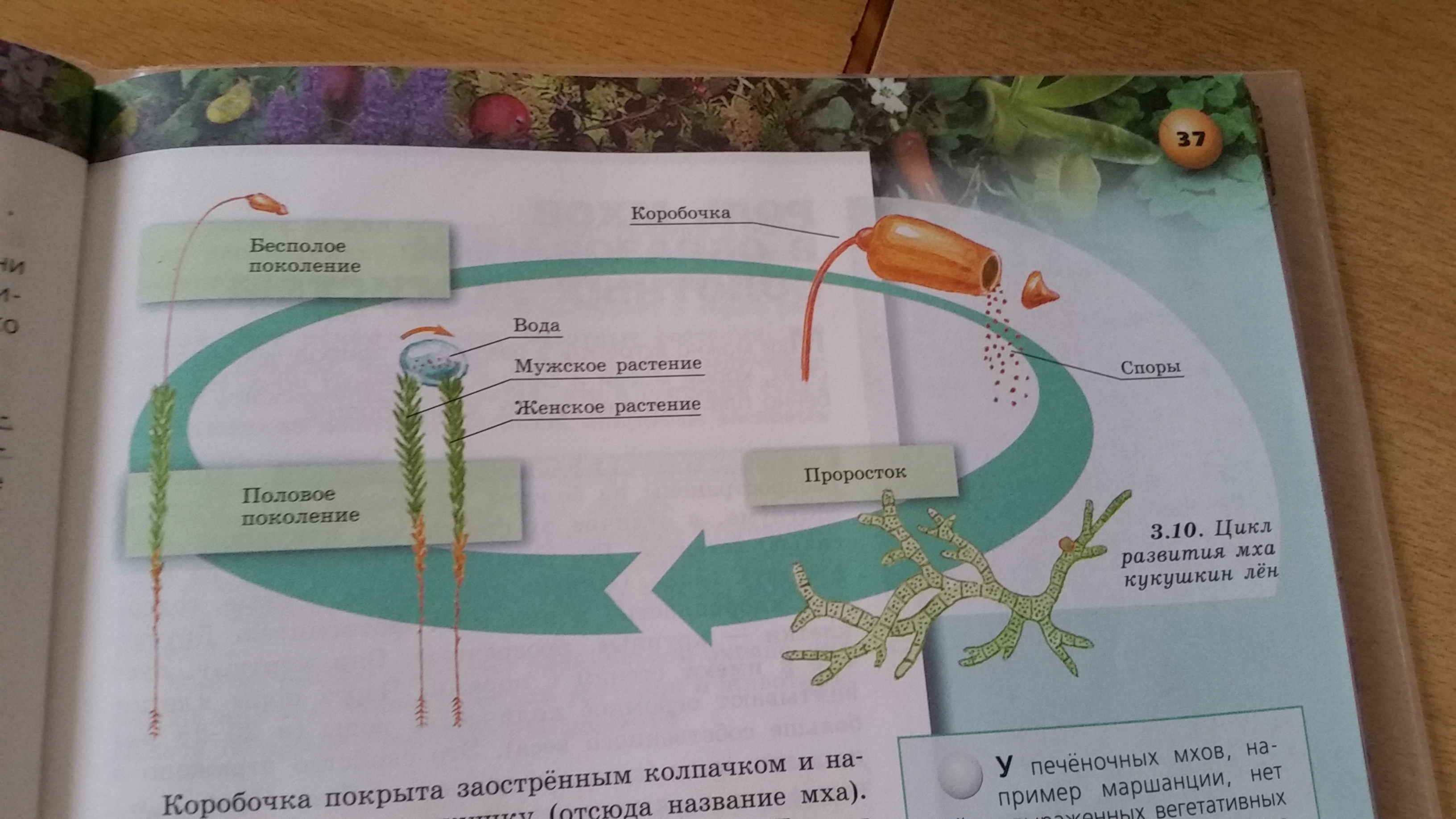 Это лвудомное растение.Спермвтозоид с помощью воды попадает на женское растение,теМ самым оплодотваряет клетку