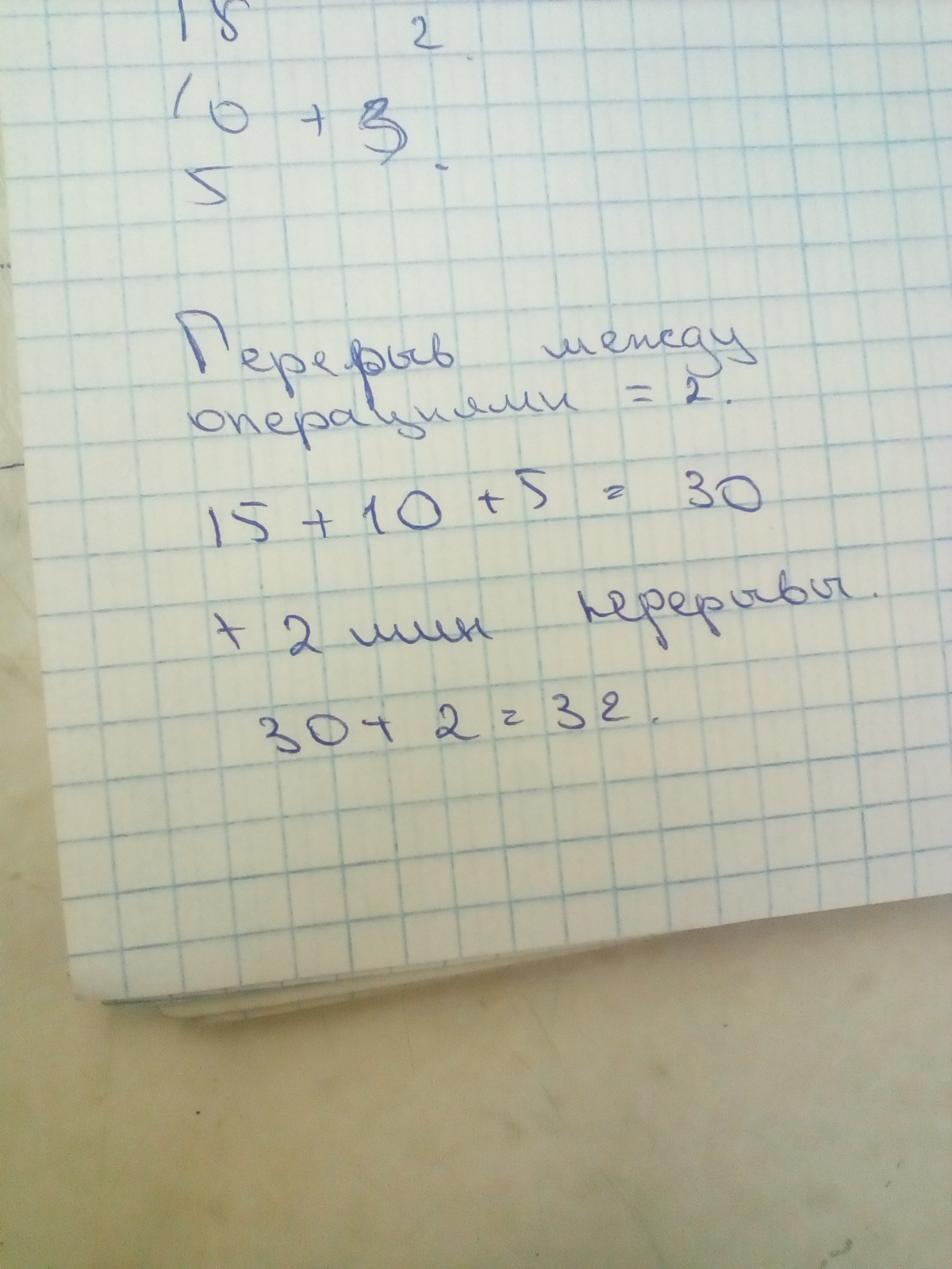 Во время стирки стиральная машина выполняет три операции, стирка,полоскание и отжим. Первая операция 15мин. вторая 10мин третья-5мин. За какое время будет постирано бельё, если между операциями стиральная машинка делает остановку на 1 минуту?