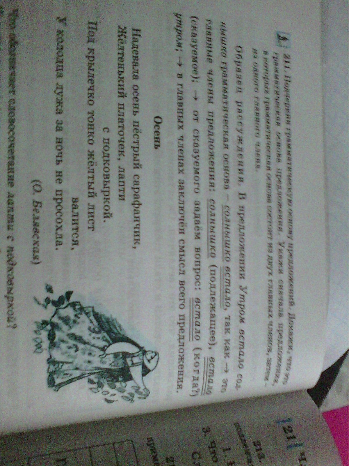 Лужа(подлеж.) не просохла(сказ.)-главные чл.