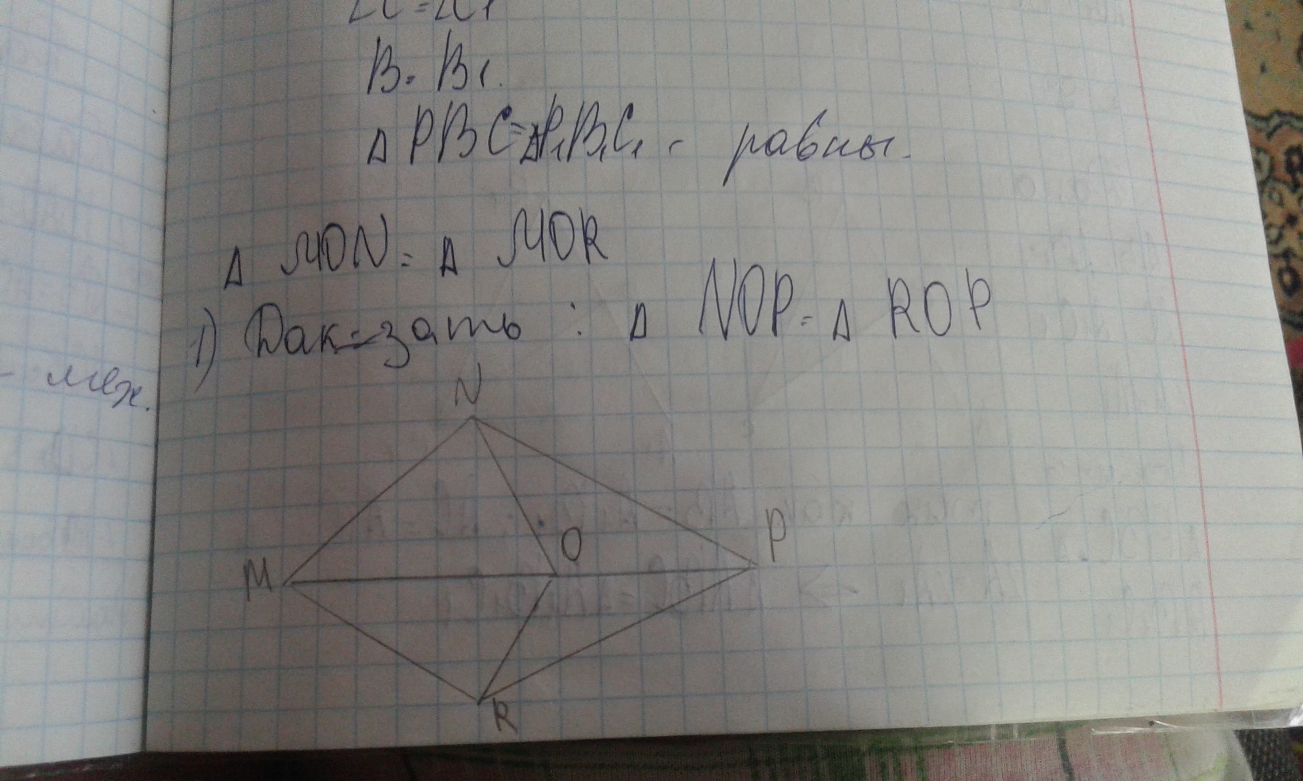 если MNPR ромб тогда NP=RP,OP единная и NO,RO пересикаются в одной точке на