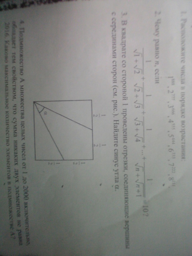 (√2-1)+(√3-√2)+(√4-√3)...........+(√(n+1)-√n).Все сократится кроме -1 и √(n+1).
