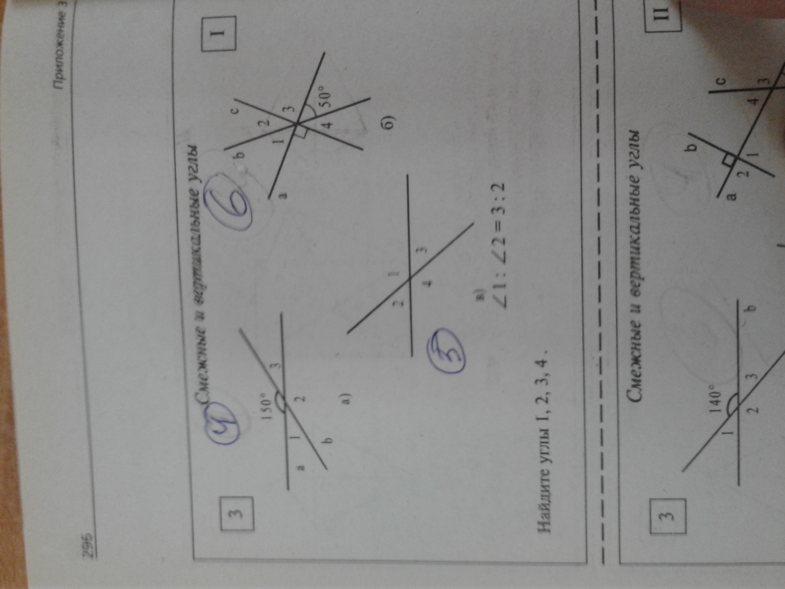 4) ∠1=∠3 они вертикальные.,∠1+150°=180°, ∠1=180°-150°=30°,