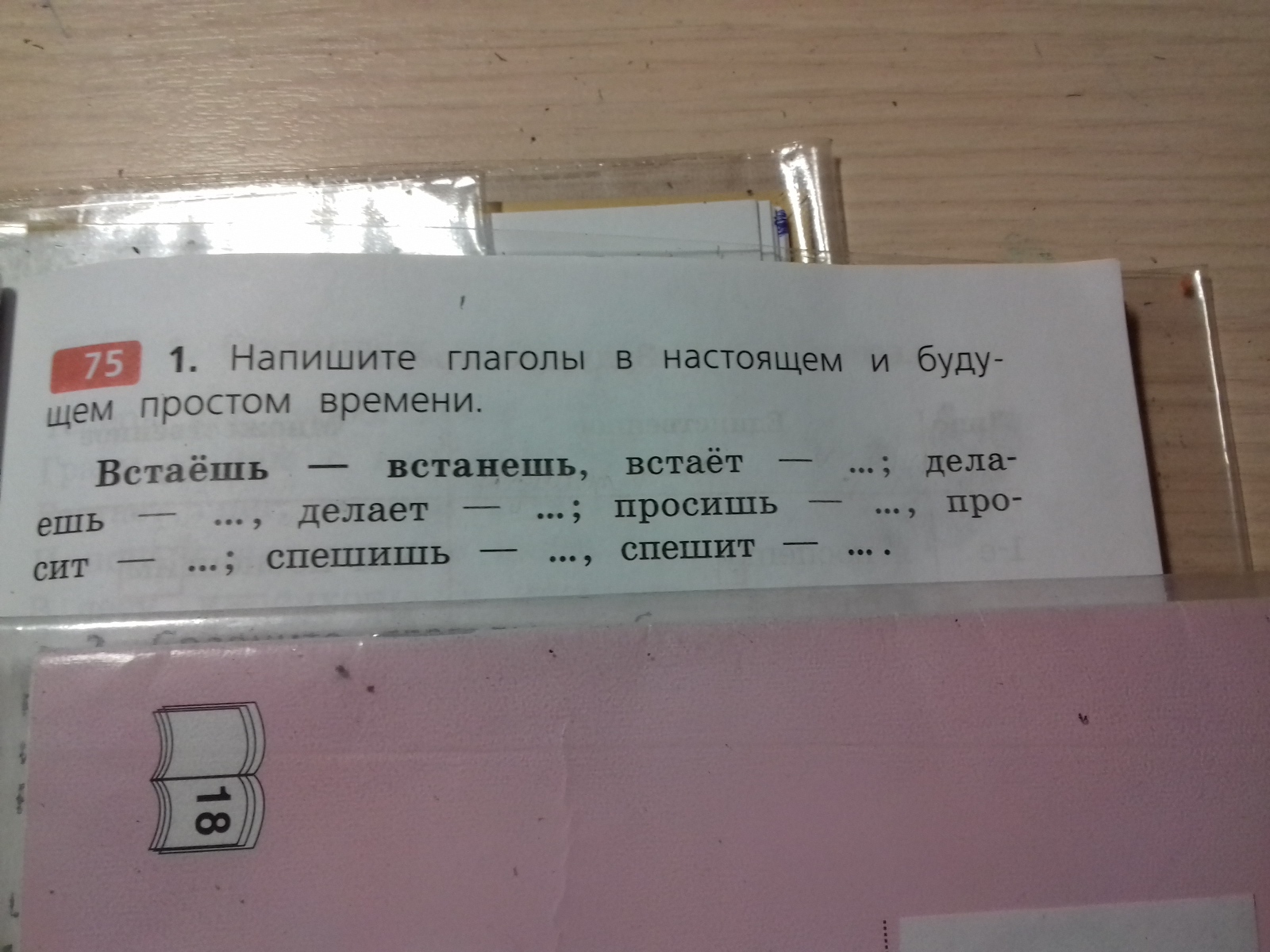 Встаёт- Вставал, делаешь- делал, делает- делать, просишь- просил,просит- просить,спешишь- спешил, спешит-спешить.