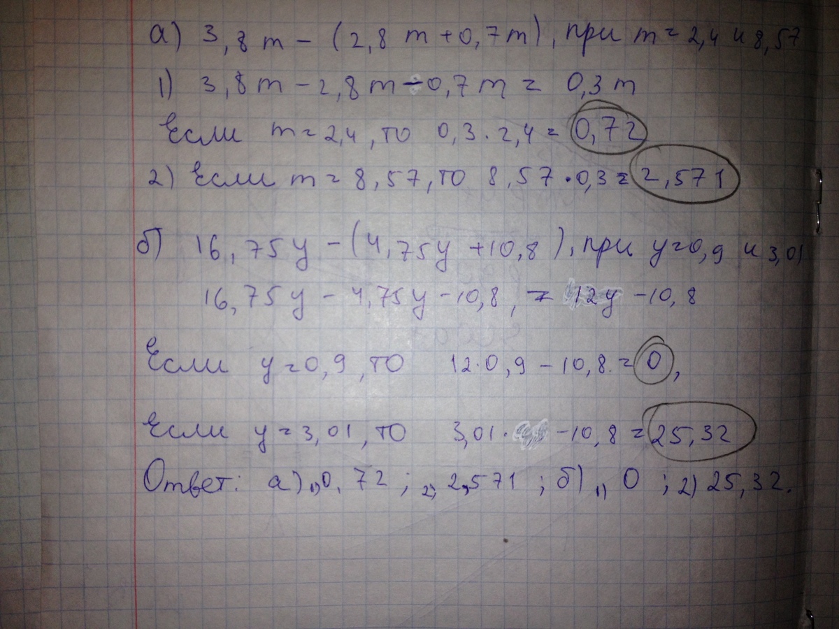 16,75 у - (4,75 у + 10,8) при у = 0,9 и 3,01