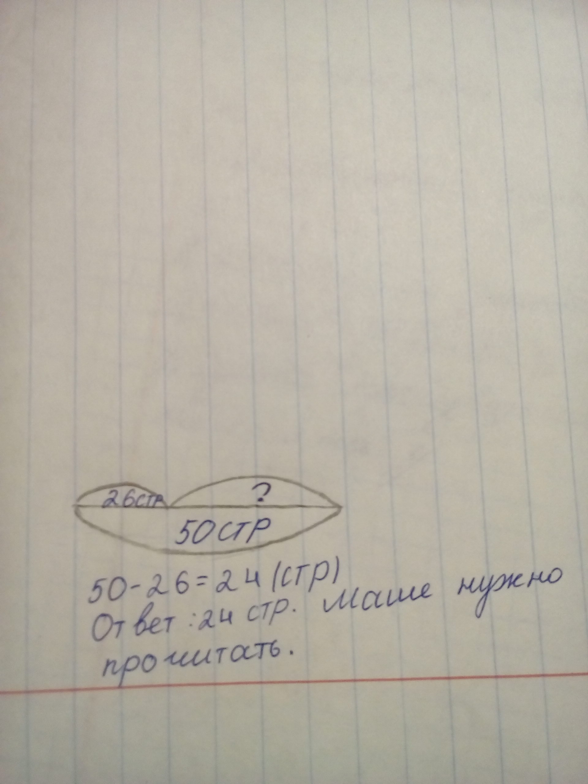 Маша прочитала 26 страниц своей книги. Сколько еще страниц Маше нужно прочитать, чтобы число прочитанных страниц стало 50? Нужно решить задачу с помощью схемы круговой.