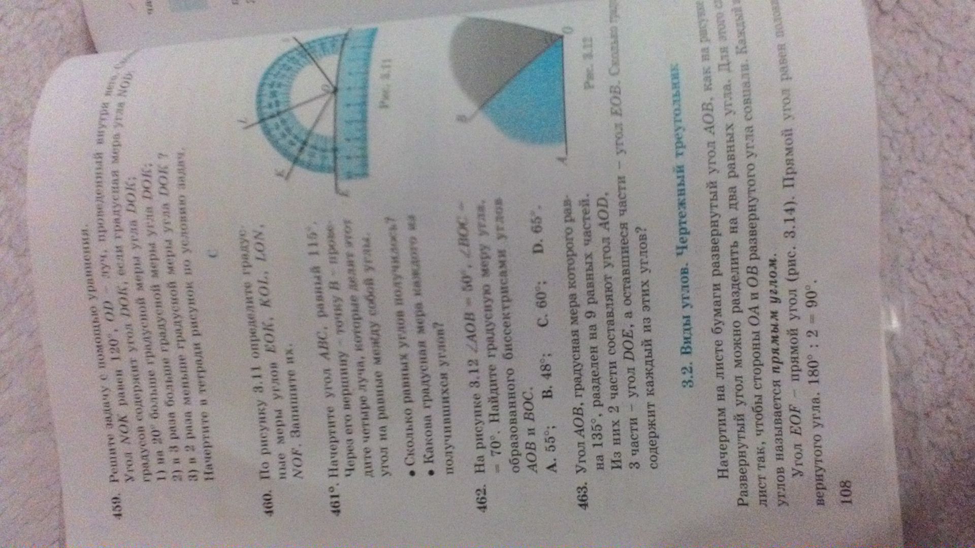 на рисунке 3.12 угол AOB = 50градусов, угол BOC = 70градусов. Найдите градусную меру угла, образованного биссектрисами углов AOB и BOC номер 462. помогите пожалуйста!!