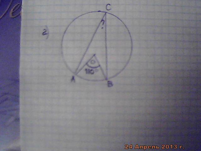 Насчет второй задачи то если О-середина окр. тогда угол АСВ равен половине угла АОВ то есть =55 градусам