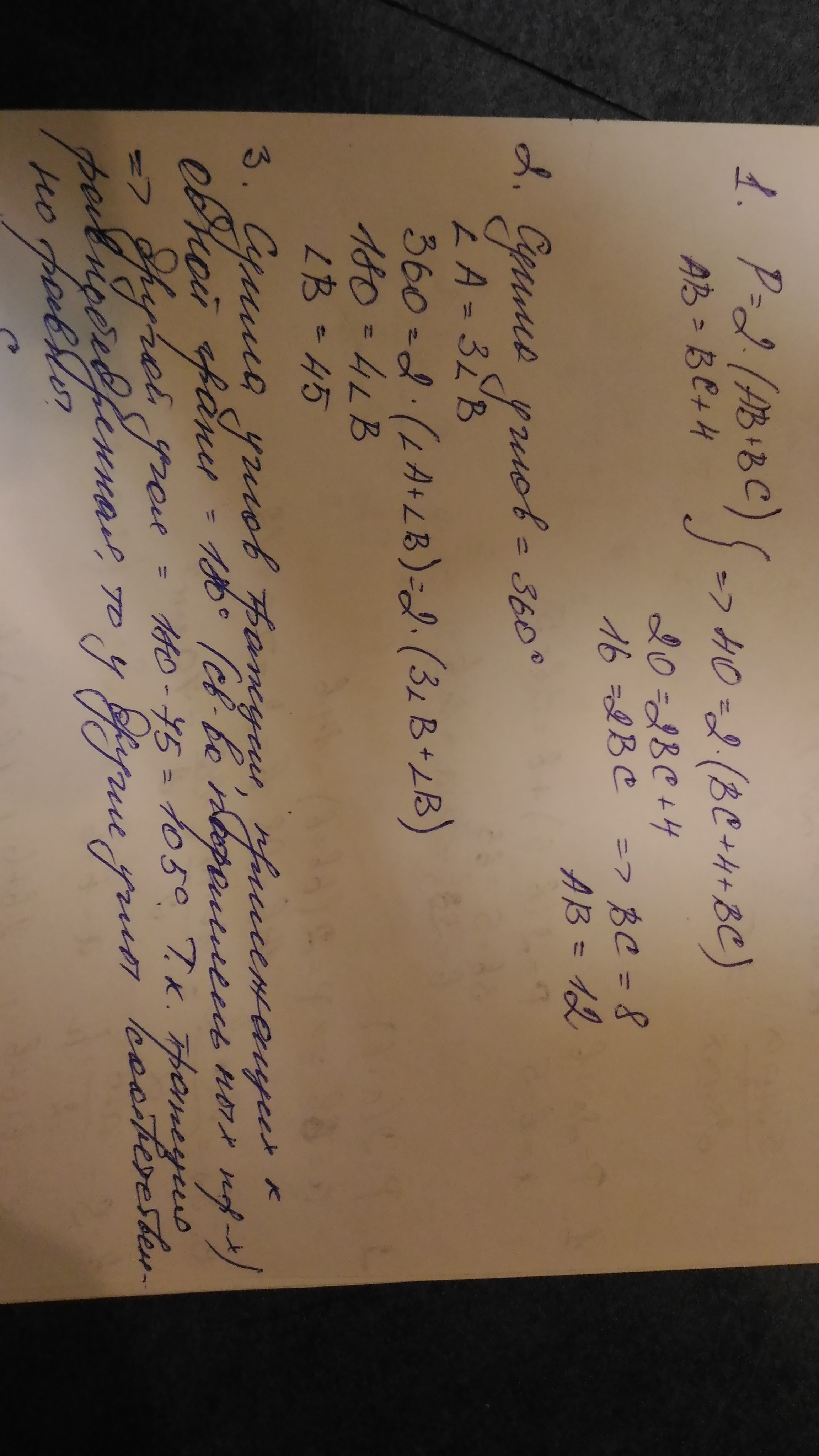 2. Найти углы пароллелограмма АВСД, если извстно, что угол А больше угла В в 3 раза .