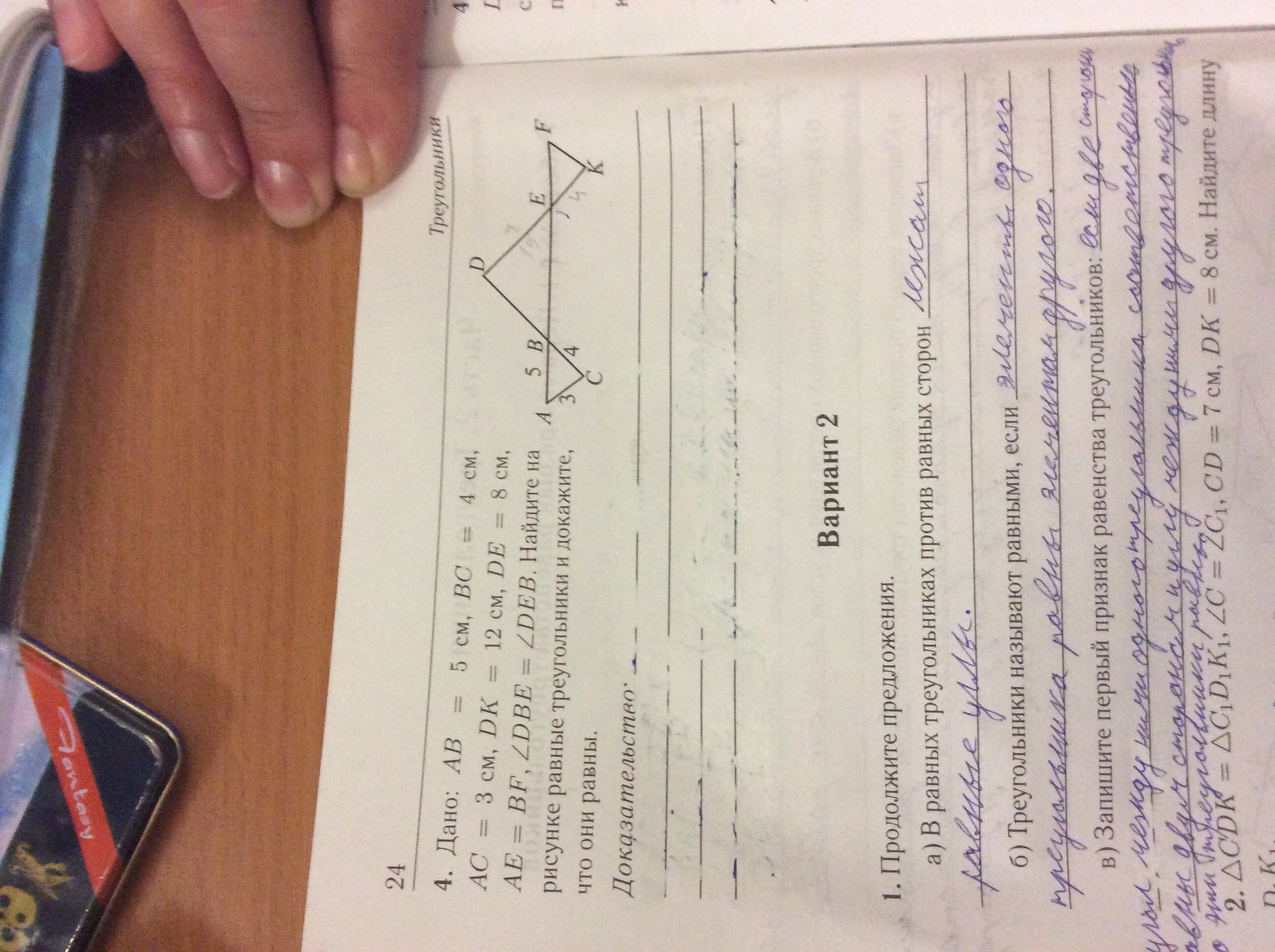 тругольник АВС=EFK по 3 признаку(по трем сторонам)