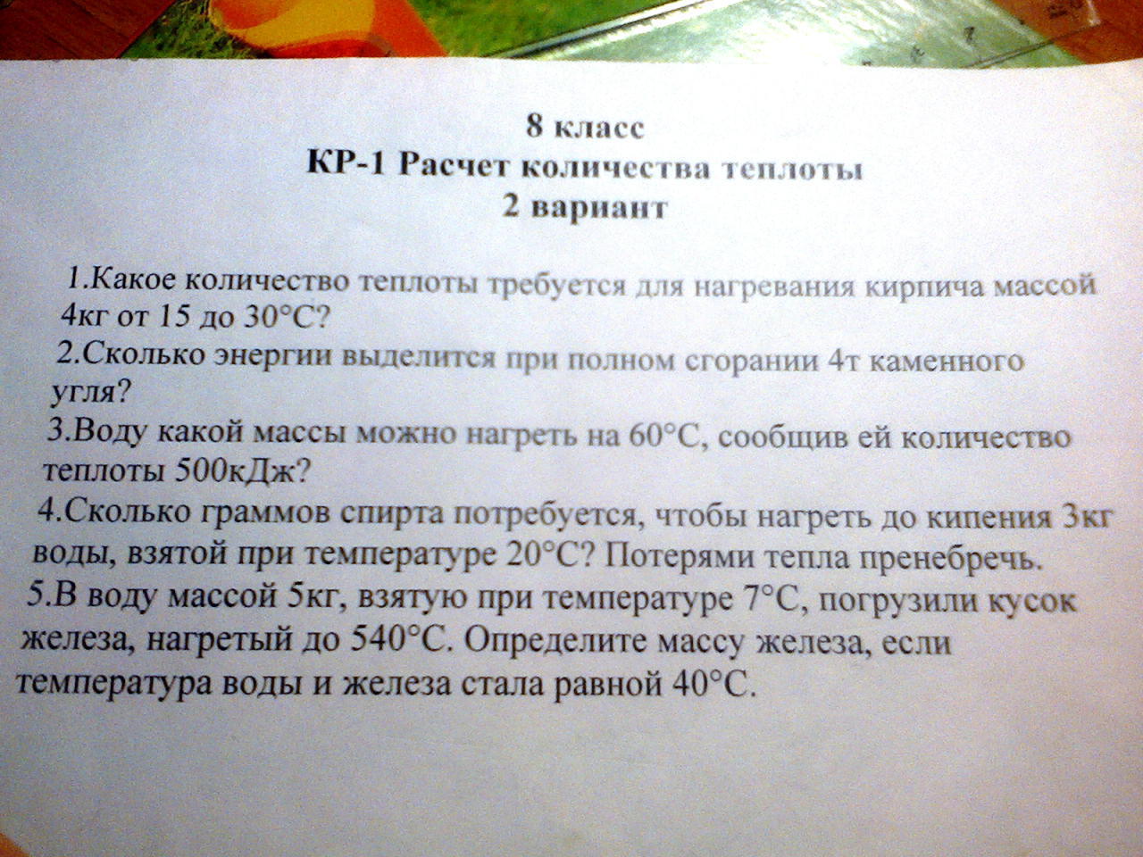 Помогите решить КР-1 по физике 8 класс, Расчет количества теплоты, помогите пожалуйста!! (закидываю фотку 2 раз т.к не уверен в 1)