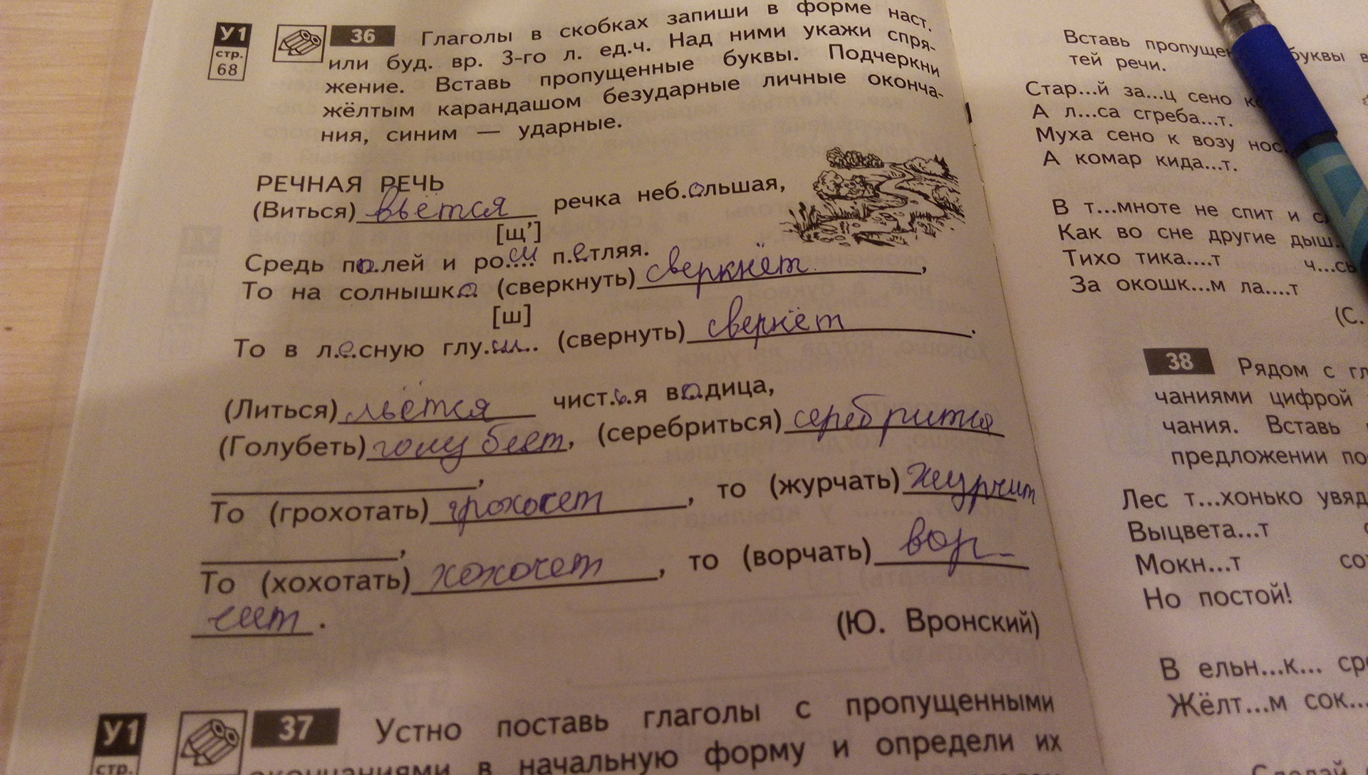 подчеркни желтым карандашом без удар. личные окончания,синим ударные. заранее спасибо)))!!!