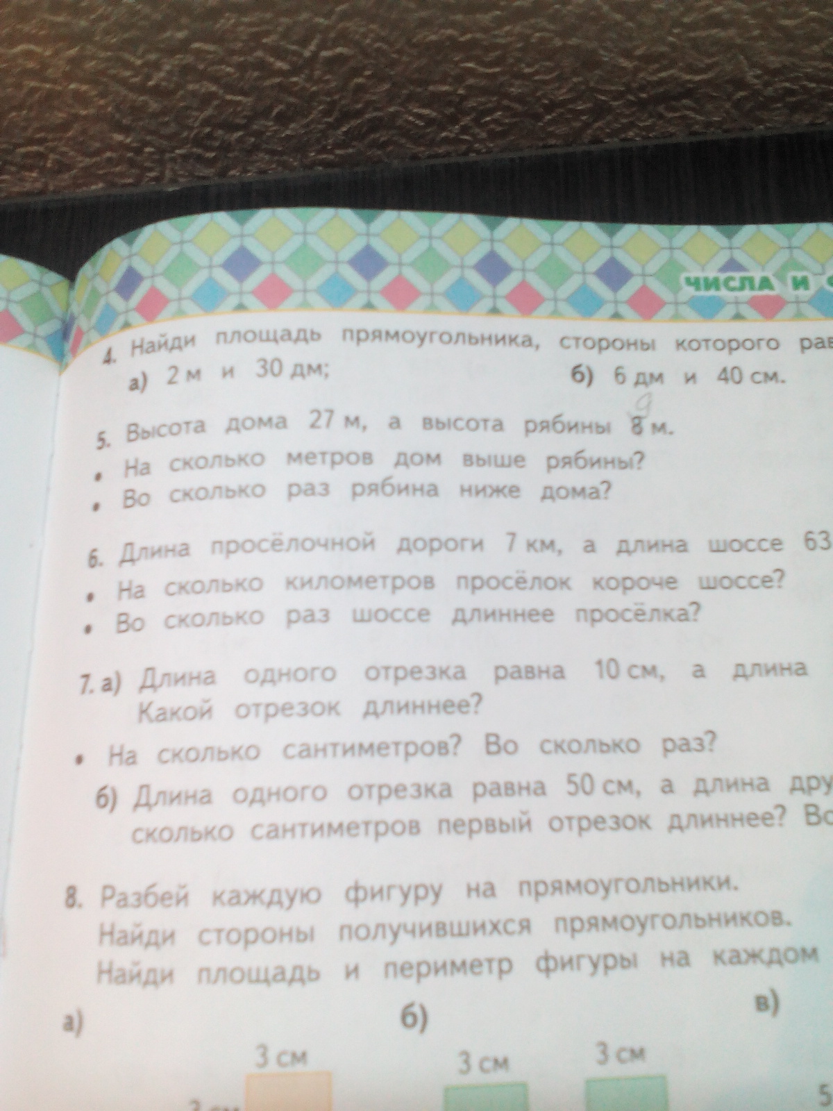 высота дома 27 м, а высота рябины 9м.•На сколько мотров дом выше рябины?•во сколько рябина ниже дома? номер пять