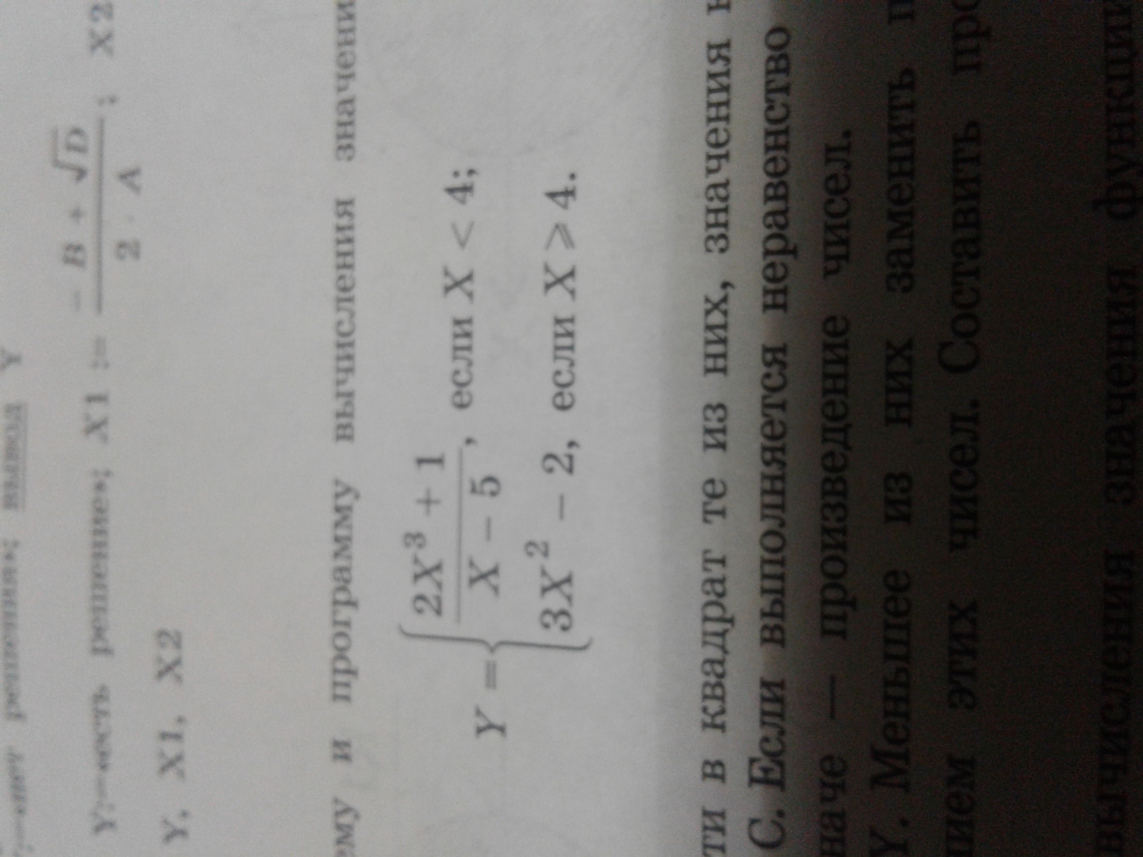 if x < 4 then y := 2 * sqr(x) * x + 1 / x - 5;
