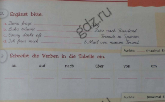 Dima fragt nach dem Weg. Luka träumt von der Reise nach Russland. Conny denkt oft an den Freunde in Spanien. Ich freue mich über das E-Mail von meinem Freund.