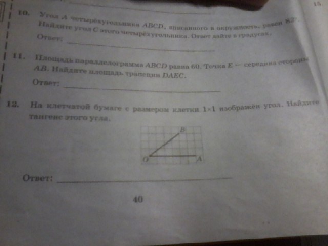 Тангенс - отношение противолежащего катета к прилежащему. Катеты равны соответственно 3 и 5, значит tg ∠AOB=3/5=0.6.