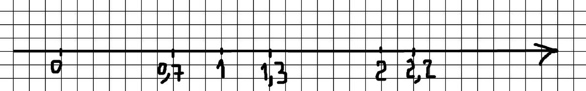 начертите координатную прямую(за единичный отрезок примите 10 клеток). Отметьте на ней числа 0,4: 1,7 и 2,1.