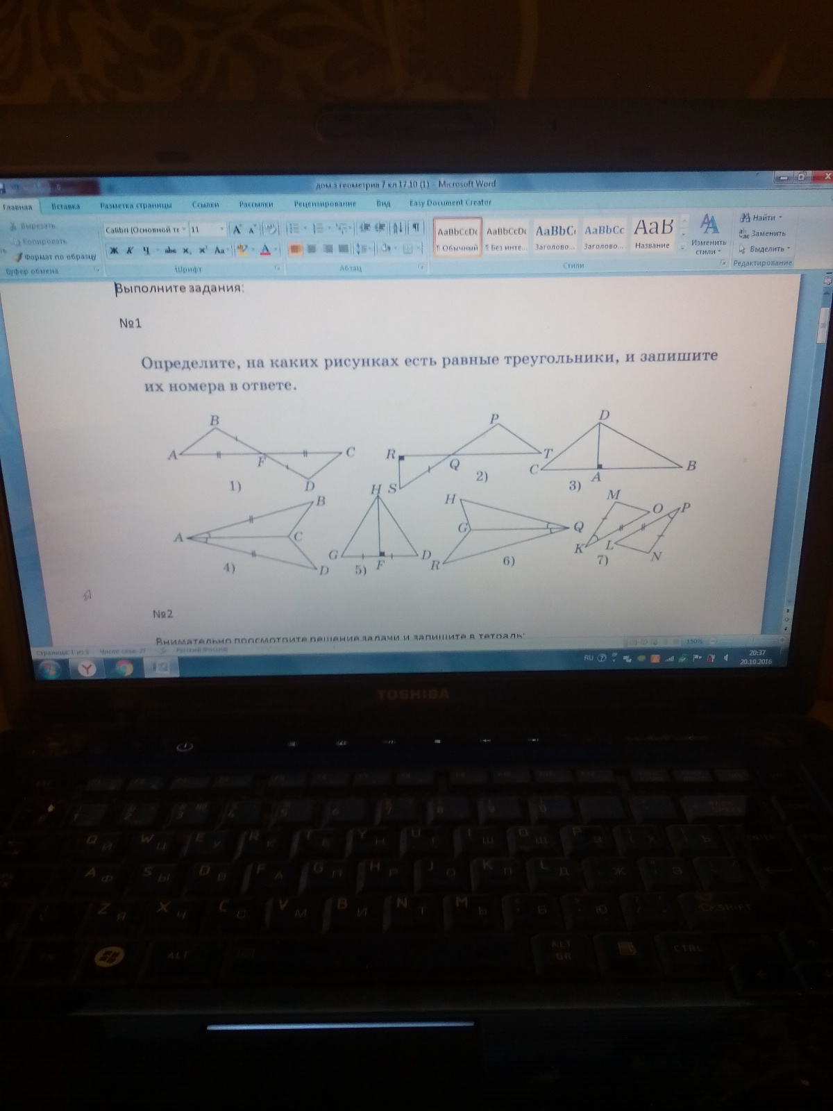 равные треугольники на первом, четвертом, пятом и седьмом рисунках