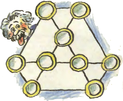 помогите пожалуйста ни как решить не можем. расставь в кружках на рисунке числа 1,2,3,4,5,6,7,8и 9 так, чтобы суммы чисел в вершинах каждого из семи треугольников были равны.