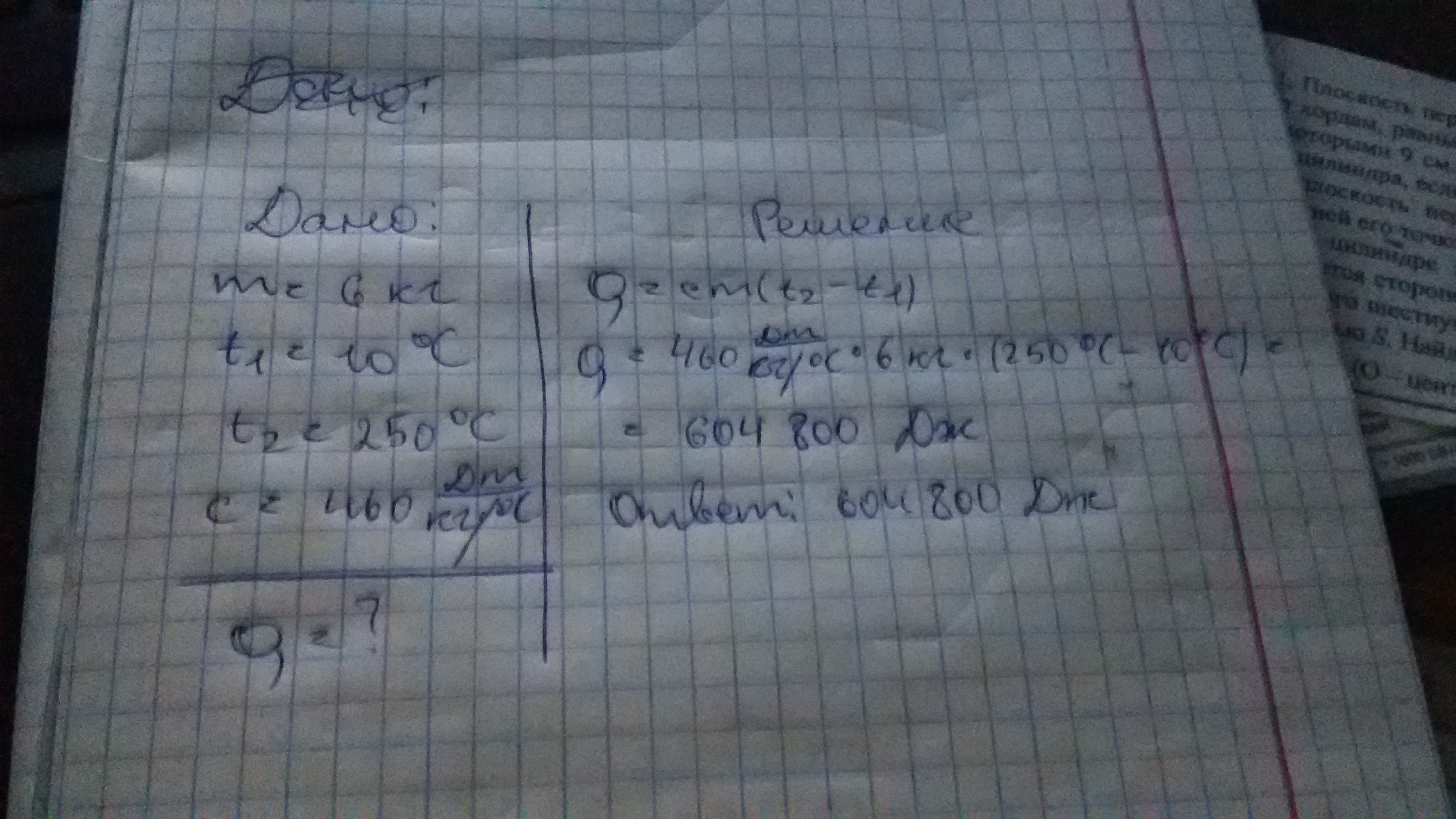 какое количество теплоты необходимо чтобы нагреть железный утюг массой 6 кг от 10 до 250 С Удельная теплоемкость железа 460 Дж(кг*С)