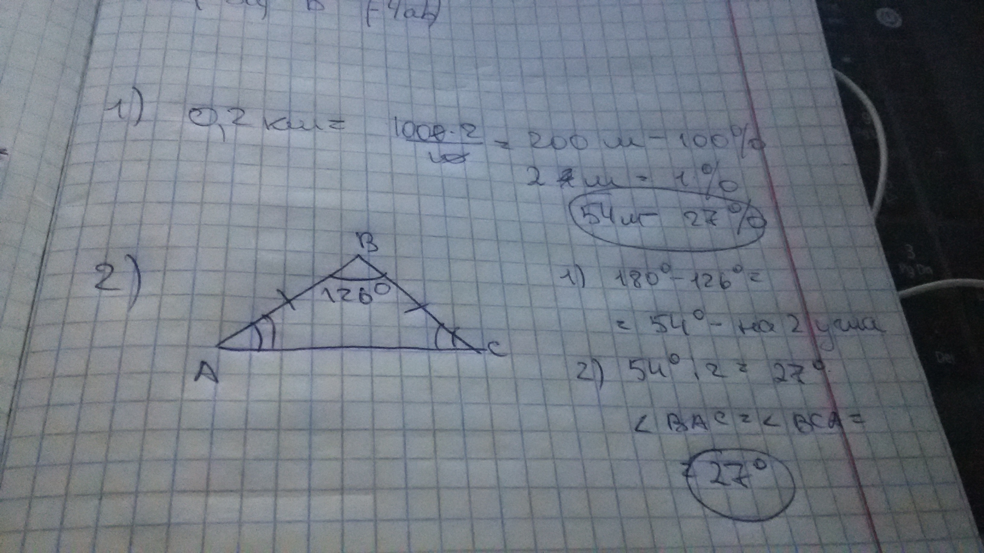 2)найдите углы равнобедренного треугольника , если один из них равен 126 градусам