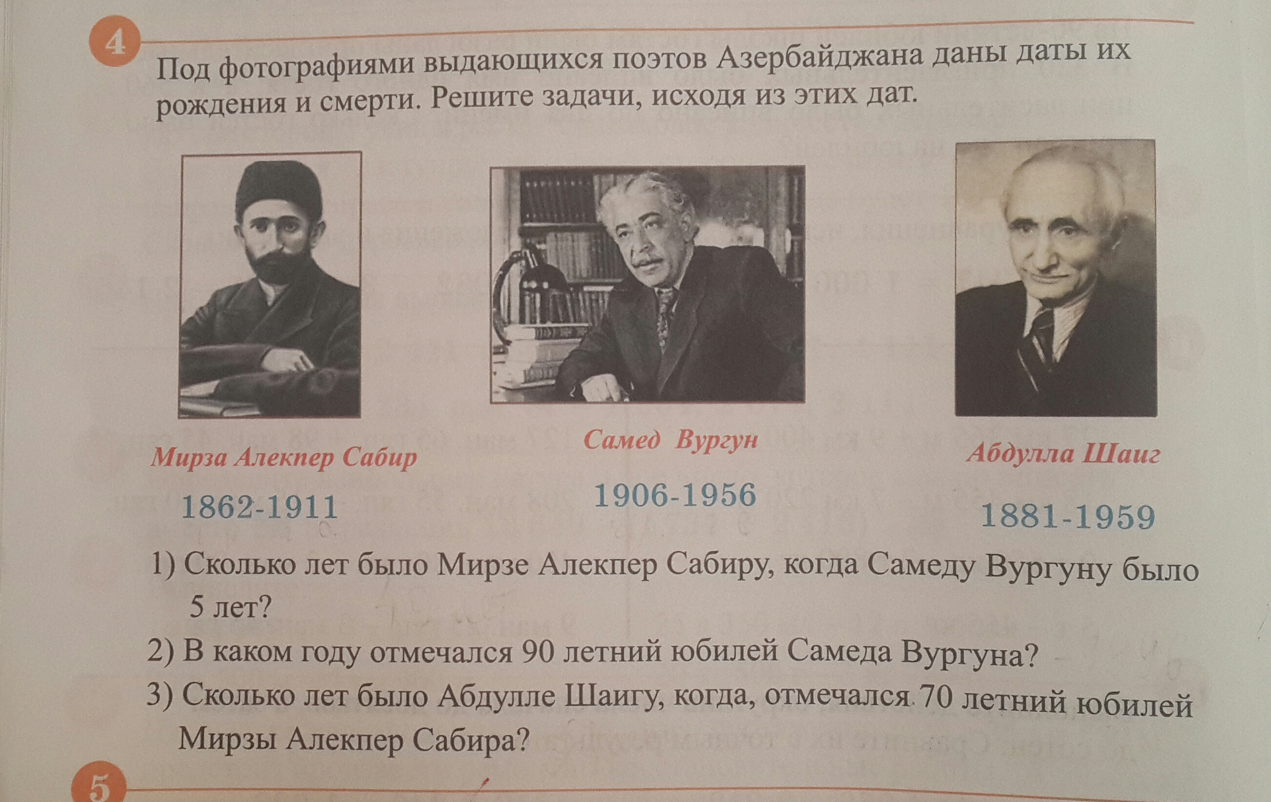 1)1906+5=1911годуСамеду Вургуну было 5 лет
