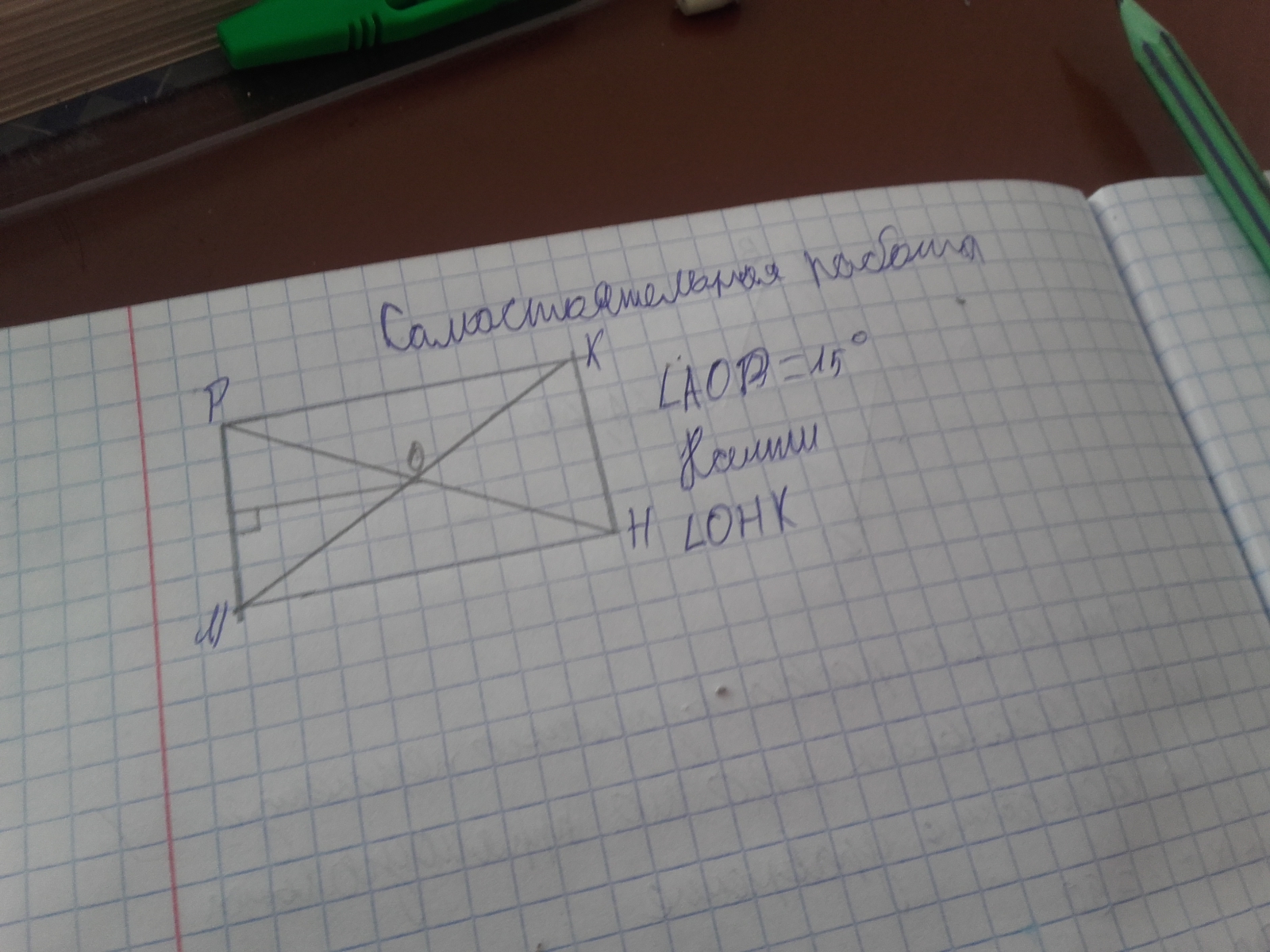 Решение опирается на сумму углов прямоугольного треугольника. Сумма углов= 180 градусов. отсюда следует, что углы AOP и OPK накрест лежащие, следовательно они равны. по 15 градусов. А опираясь на сумму углов треугольника получаем, что искомый нами угол равен 75 градусов. 180-90-15=75