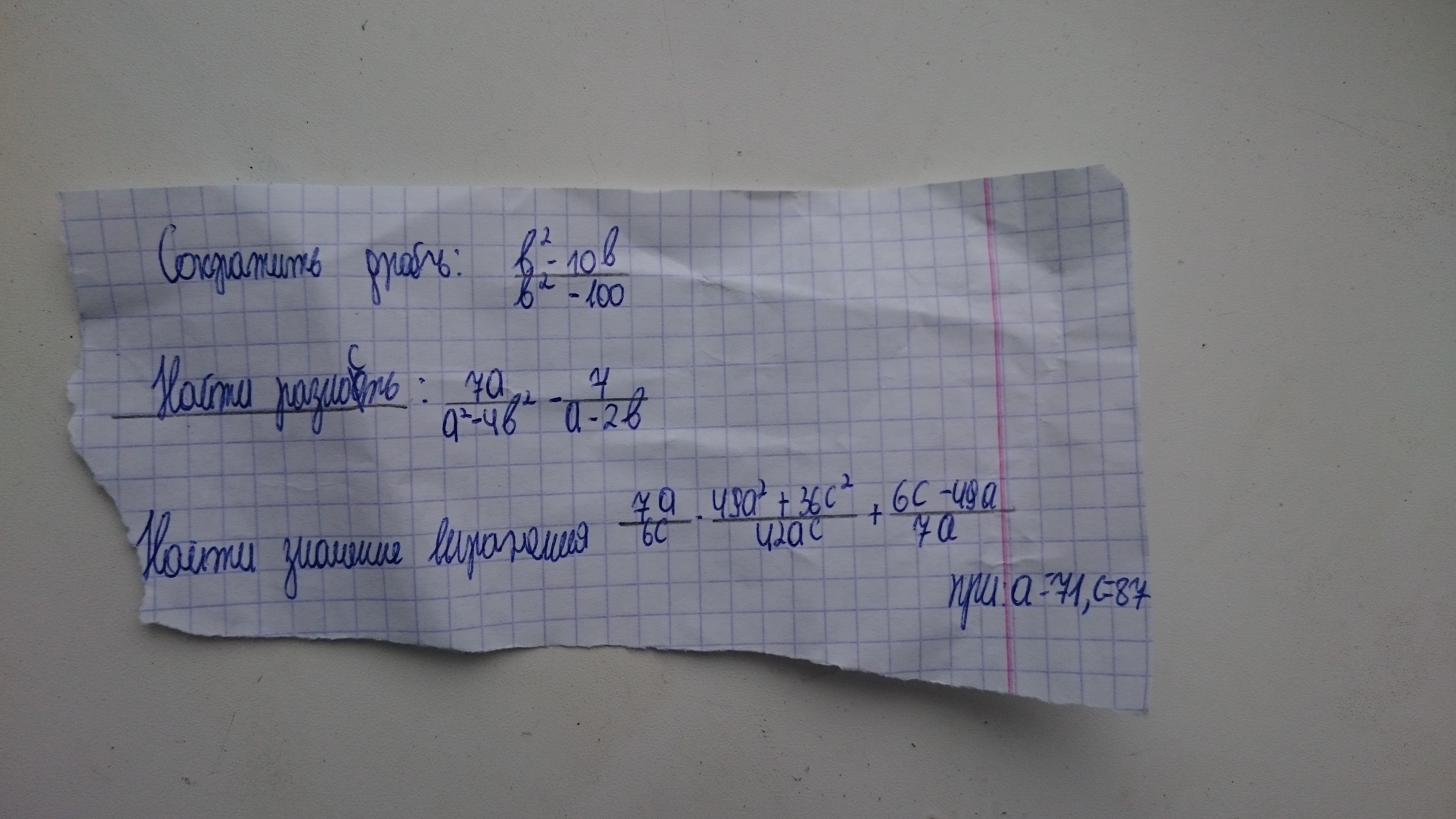 1) (b^2-10b)/(b^2-100)=(b(b-10))/((b-10)(b+10)) при условии что b<>10 =>