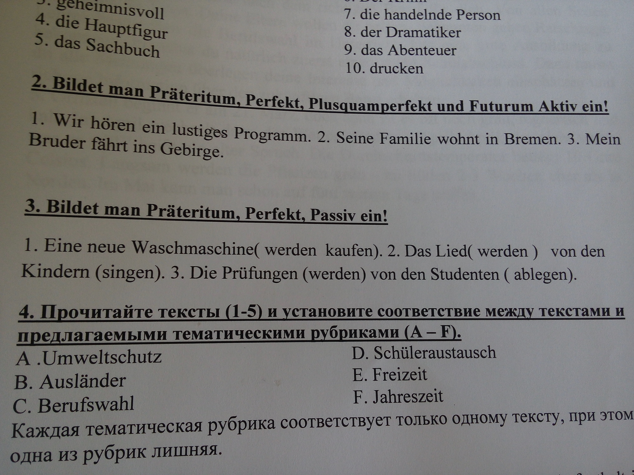 3. Eine neue Waschmaschine wurde gekauft. Eine neue Waschmaschine ist gekauft worden. Das Lied wurde von den Kindern gesungen. Das Lied ist von den Kindern gesungen worden. Die Prüfungen wurden von den Studenten adgelegt. Die Prüfungen sind von den Studenten abgelegt worden.