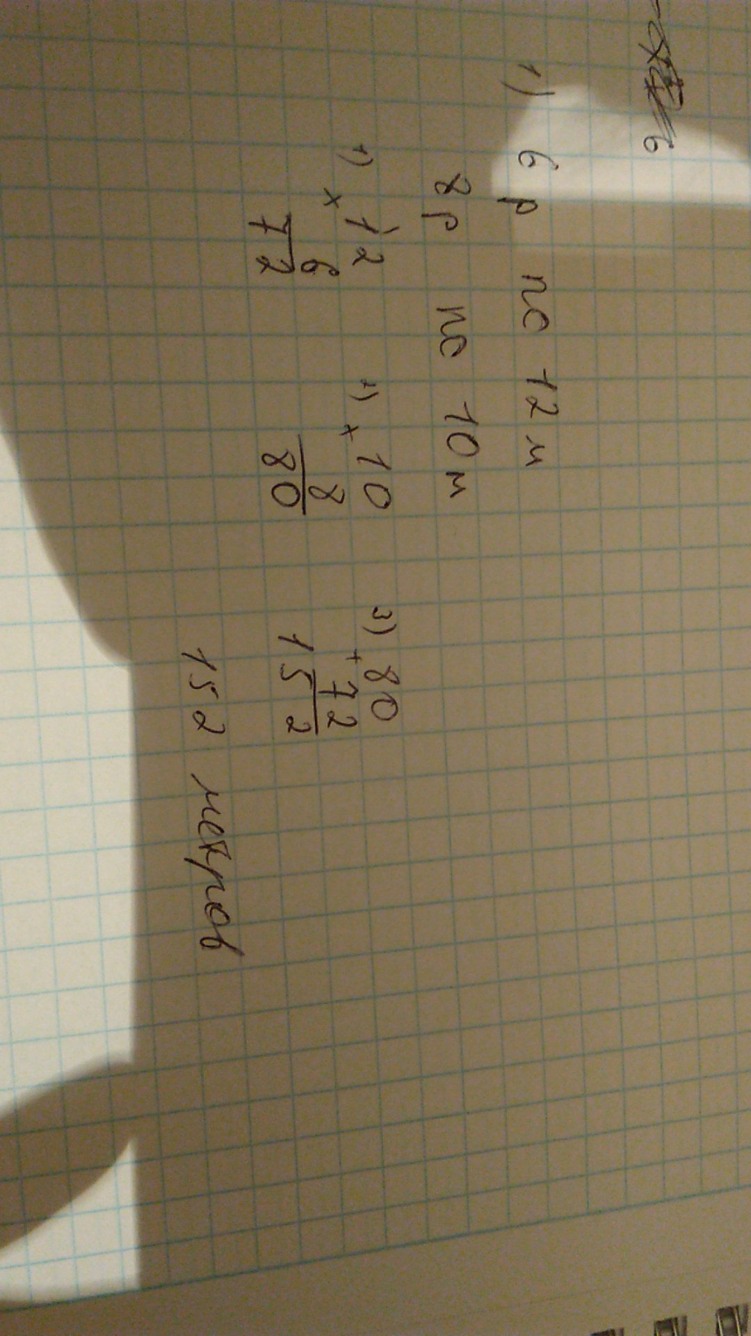 для ремонта одной комнаты понадобилось 6 рулонов обоев по 12 м каждый, а для ремонта другой -8 рулонов по 10 м каждый. сколько всего метров обоев ушло на ремонт?
