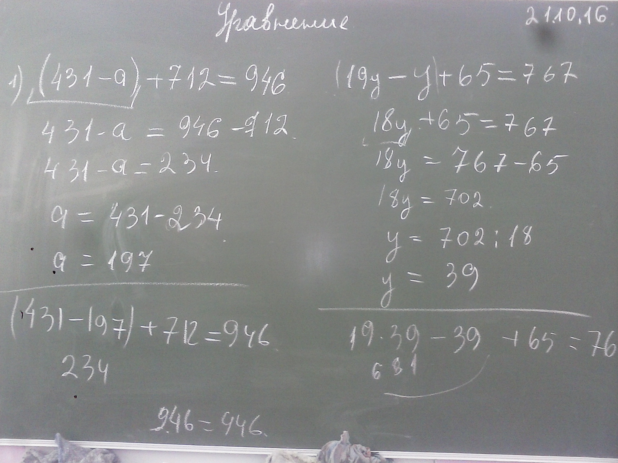 Простые линейные уравнения. В левой части оставляем все, что содержит неизвестное, в правую переносим просто числа. При переносе через знак равенства меняем знак числа. Получаем равенство. Для получения значения неизвестного делим число в правой части на численный коэффициент при неизвестном. Во втором уравнении просто вычитаем из 19у один у.
