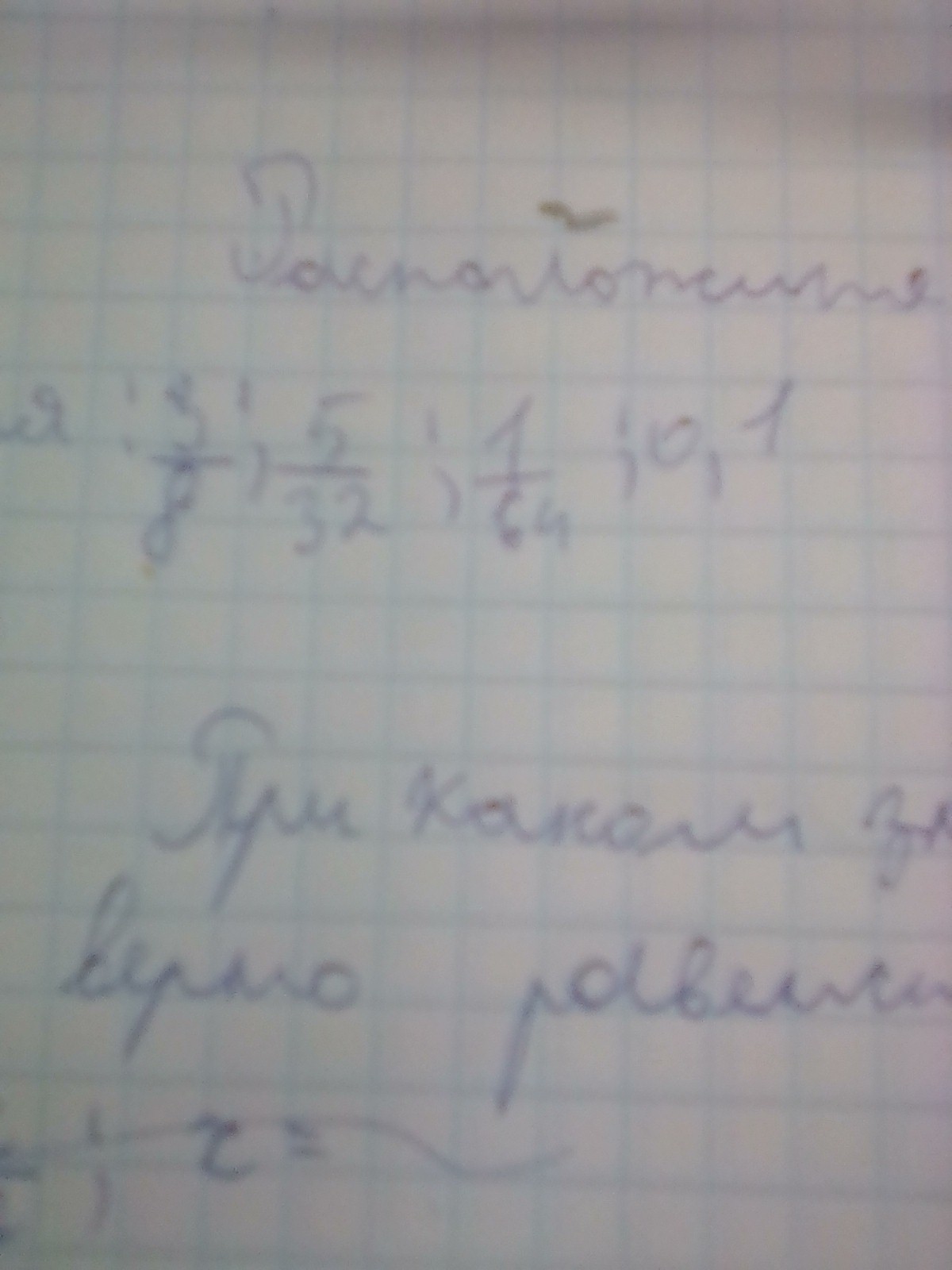 Приведем дроби к общему числу внизу получится 3/8= 24/64; 5/32= 10/64; 1=64; 0.1/1=6.4/64 теперь сравнивает числа по верху получится