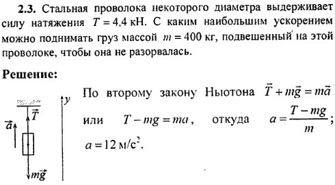 Стальная проволока некоторого диаметра выдерживает силу натяжения Т. С каким наибольшим ускорением можно поднимать груз массой m, подвешенный на этой проволоке, чтобы она не разорвалась?