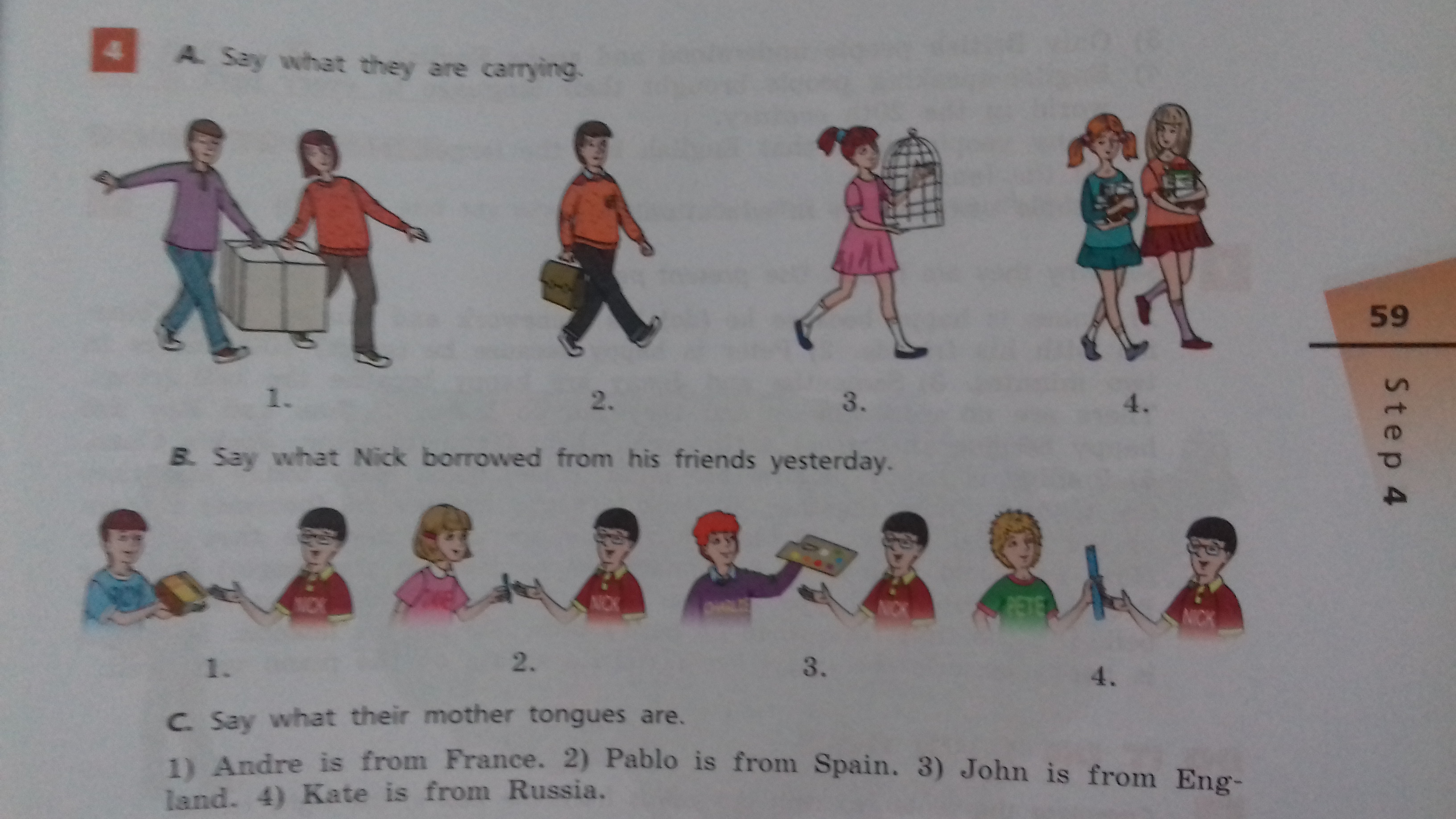 (B.) Say what Nick borrowed from his friends yesterday.