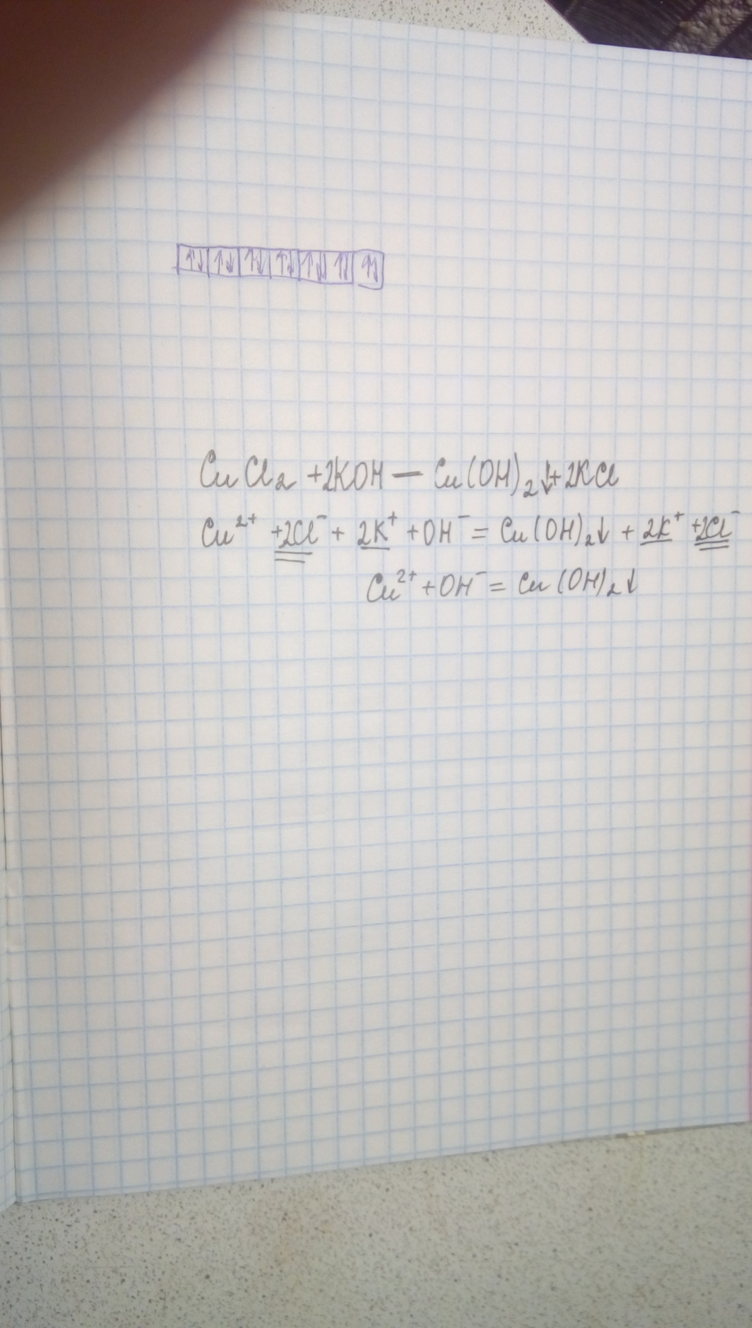 Составьте молекулярное, полное и краткое ионное уравнения реакции взаимодействия хлорида меди (II) и гидроксида калия.